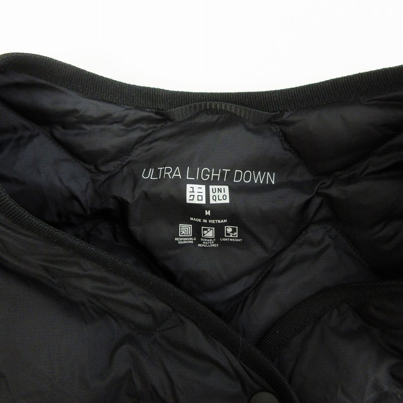 ユニクロ UNIQLO ウルトラライト ダウンジャケット ブルゾン ノーカラー ボタン 450453 ナイロン 黒 ブラック M ■FF メンズ