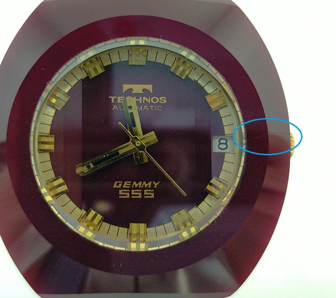 ・ヴィンテージテクノスの『ジェミー SSS』 ケースに人工宝石のネオサファイアを使用した希少な1本です。ダイヤルのSSSはサファイアケース、サファイアガラス、サファイアダイヤルを意味する「SSS(トリプルエス)」となっています。