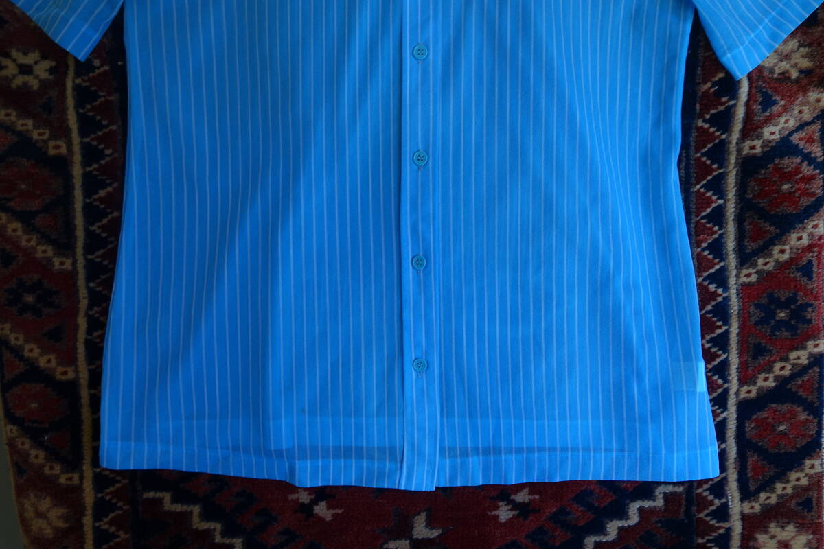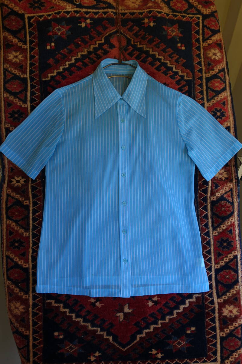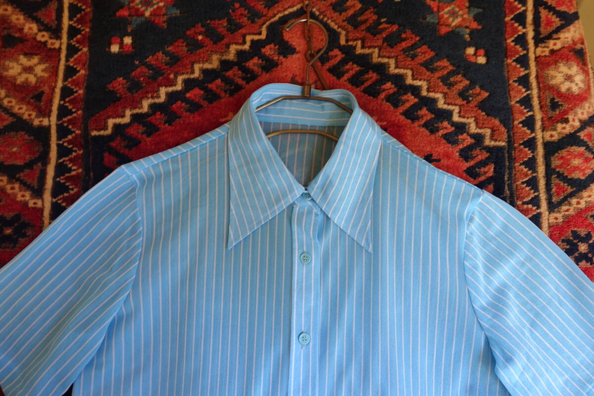 ○[60s70s80s vintage ヴィンテージ 青 ブルー 水色 ストライプ レトロシャツ]USED古着 昭和レトロ・モダン・モッズ