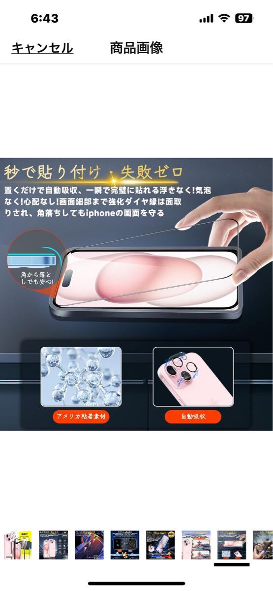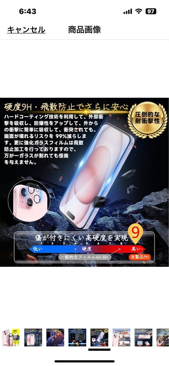 f419 iPhone 15 ガラスフィルム 【2* フィルム + 2* レンズ保護フィルム+ 1*ガイド枠付き+ 1*取り除き発泡板】国産旭硝子材質 3D Touch対応