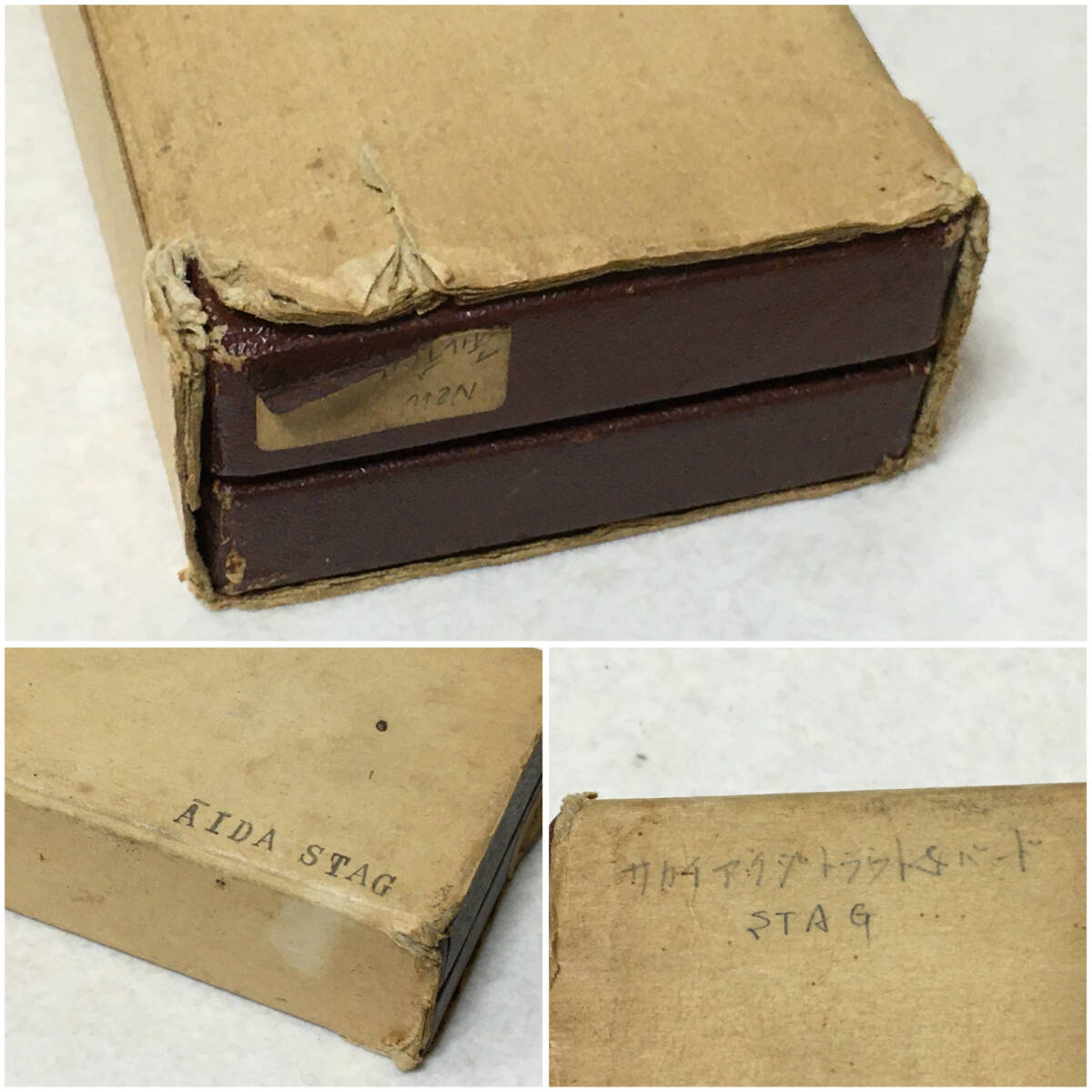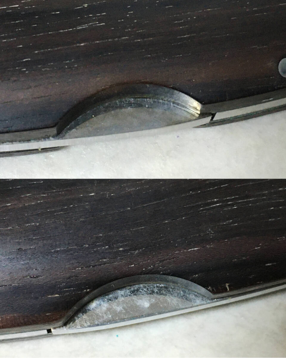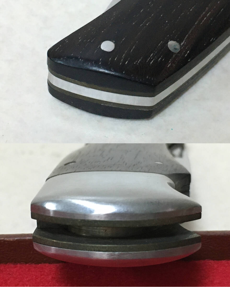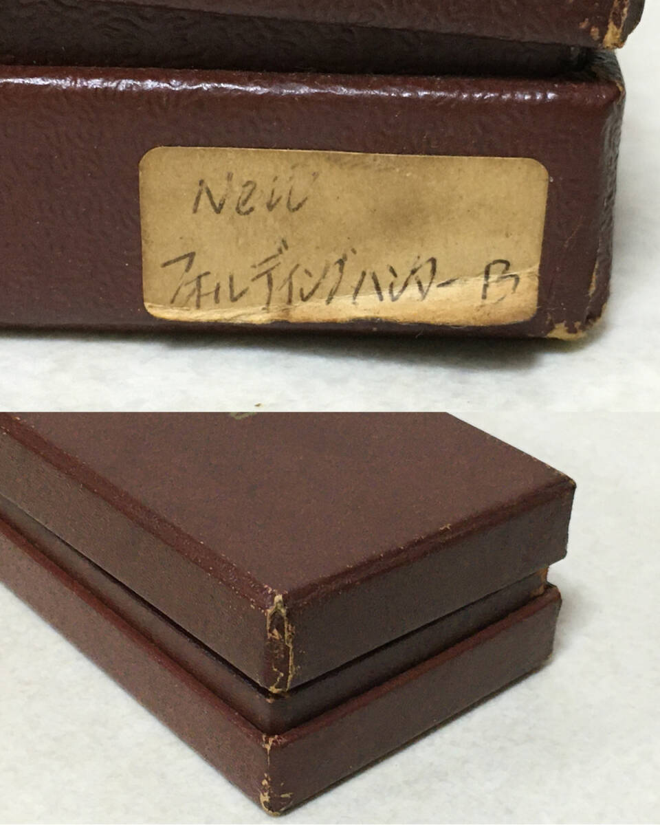 * 商品説明 * ナイフ:ややくすみ・擦れがあります。 箱:傷みが目立ちます。 画像にて状態をご確認ください。 サイズ: 折り畳んだ状態で 全長約12.2㎝ 幅3.2㎝ 展開した状態で約21㎝ 刃渡約9㎝ 刃厚み 0.3㎝ 重量 165g サイズにつきましては若干の誤差があるものとお考えください。 サイズ: サイズにつきましては若干の誤差があるものとお考えください。