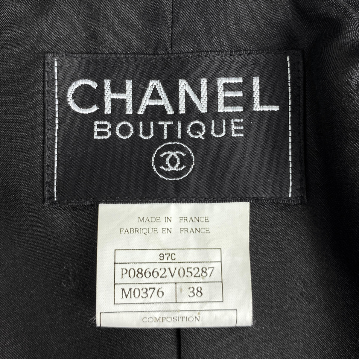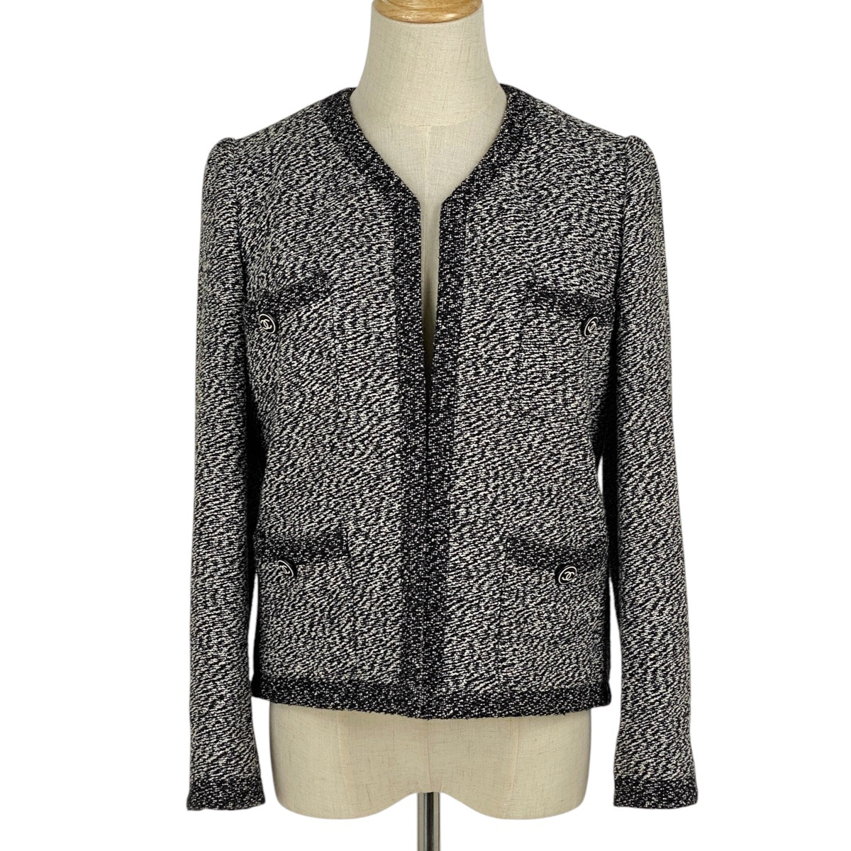 シャネル CHANEL ココマークボタン ノーカラージャケット ツイード P08662 ノーカラージャケット コットン ウール ナイロン ブラック レディース 【中古】 |