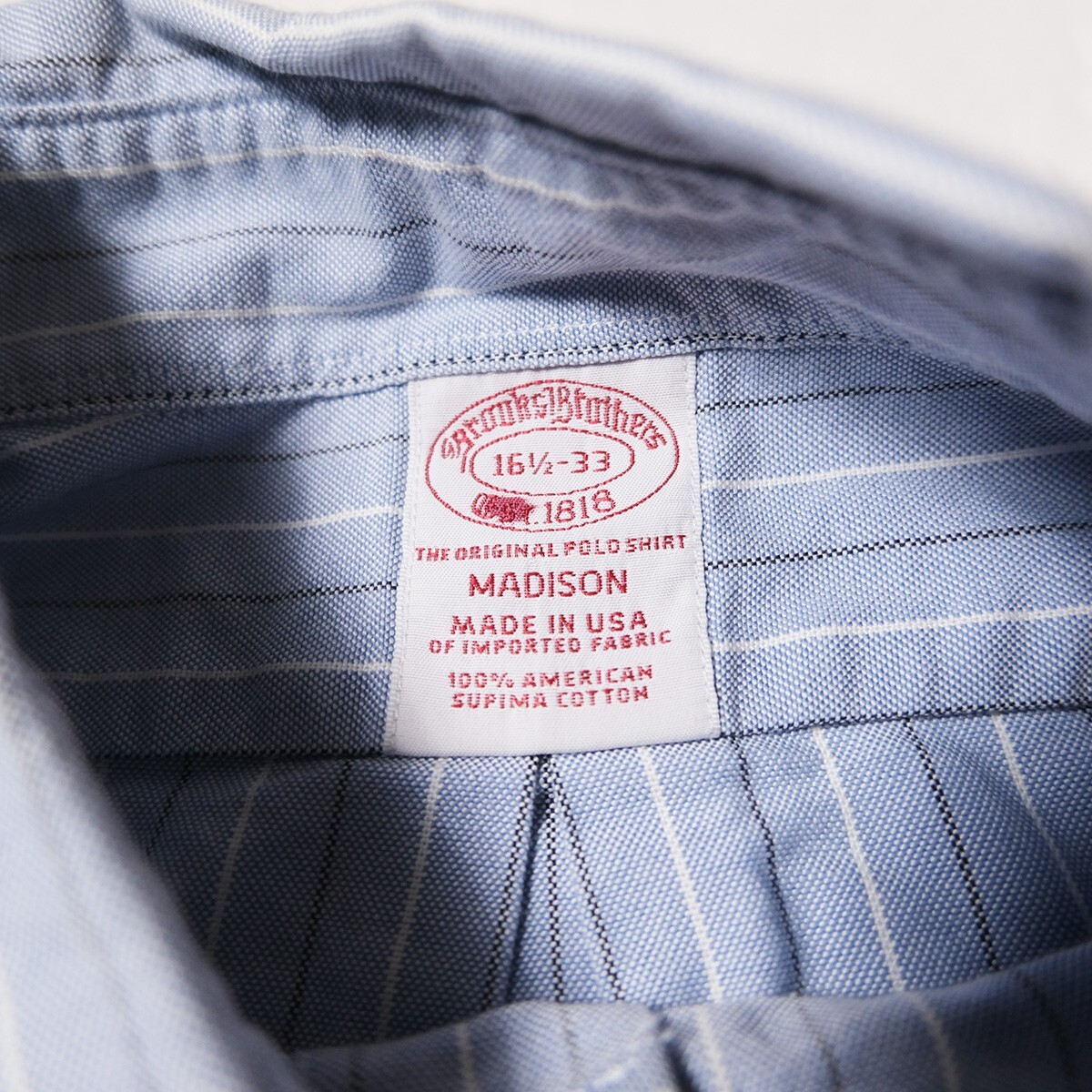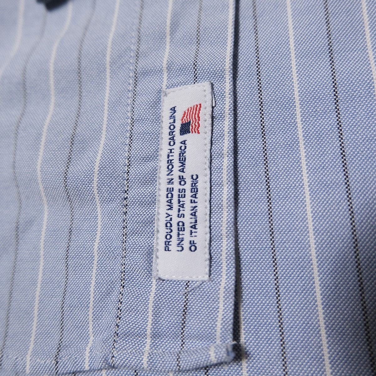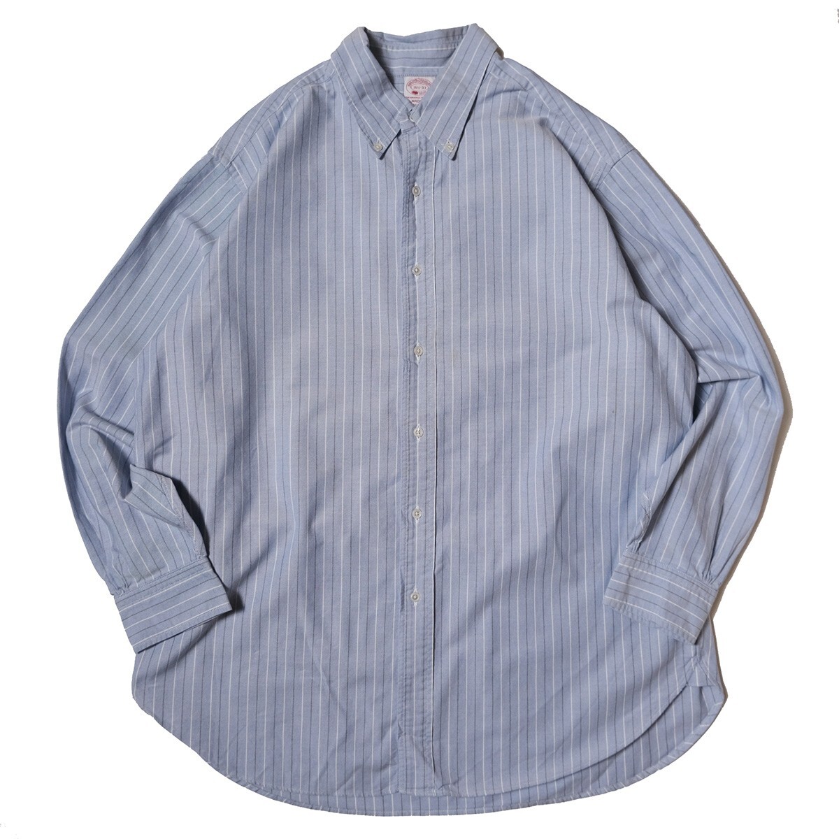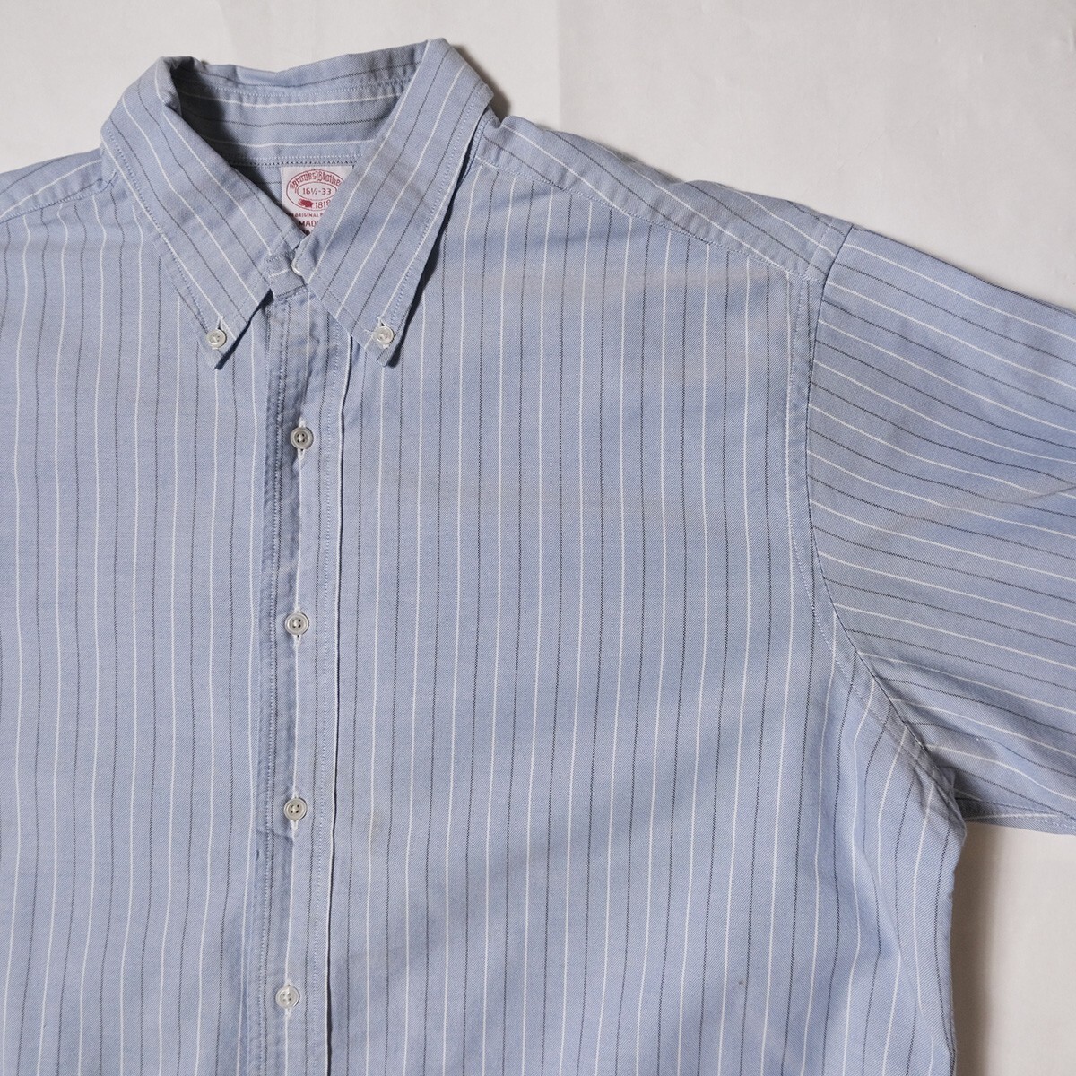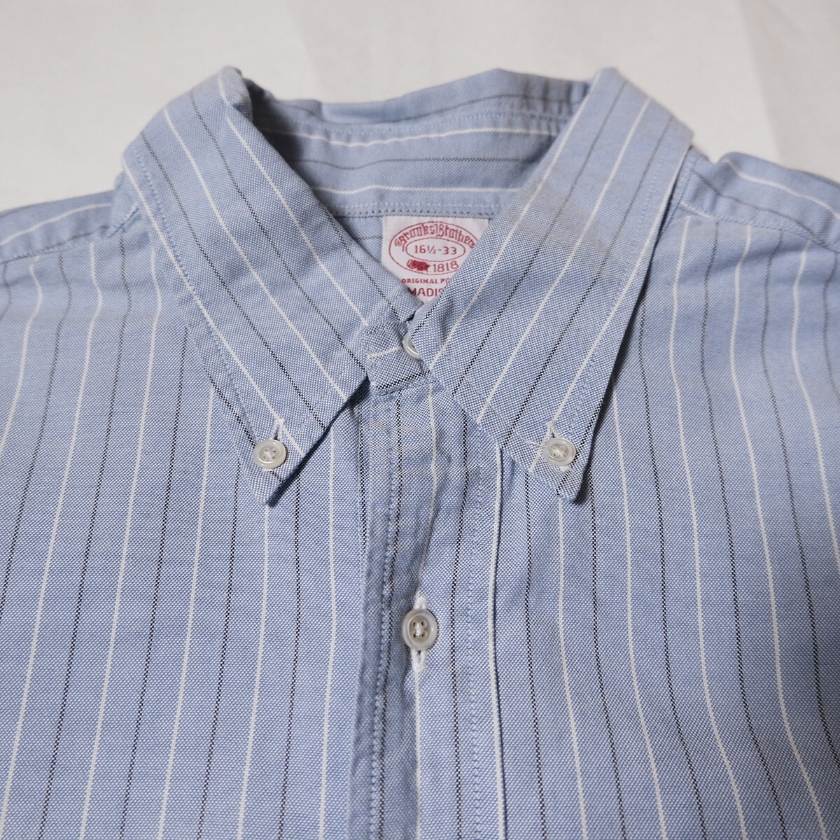 00’s USA製 ブルックスブラザーズ ストライプ オックスフォード コットン ボタンダウンシャツ (16 1/2-33) 青×白 アメリカ製 ポロカラー