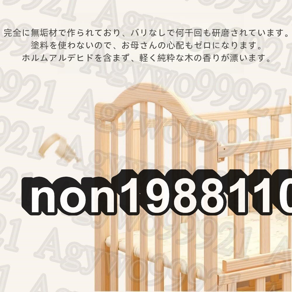 ●商品未使用 ★状態:新品未使用 【製品素材】 このベビーベッドは健康的で環境に優しい天然松材で作られています。 赤ちゃんの安全を考慮した素材を使用しています。 さらに、天然素材で作られており、化学物質や有害な成分は含まれていないため、赤ちゃんの健康と快適さを守ります。 【ママの隣で安心して寝られるベビーベッド】 ママが寝ているベッドの延長として、大型ベッドに連結して使えるベビーベッドです。 大人用ベッドの隣に赤ちゃんの就寝スペースを作ることができるので、誤ってつぶしてしまう心配もありません。 【高さ調整可能】 高さ三段の調整可能ですので、様々の家具にピッタリします。ママの腰をよく保護できるし、ベビーのおむつを替える時も便利です。 【キャスター付き】 キャスター付きベビーベッドなら、赤ちゃんが寝ている間でも家の中を自由に移動でき、使いやすさが魅力です。 日中はリビングルーム、夜は就寝準備中の寝室など、頻繁に場所を変えることができます。 【多機能】 弊社のベビーベッドはバシネット、プレイベッド、ソファベッド、デスク、ベッドサイドベッドとして使用できます。収納扉が付いておりベッド下のスペースにはお世話グッズなどを収納できます。 ●海外輸入品です。