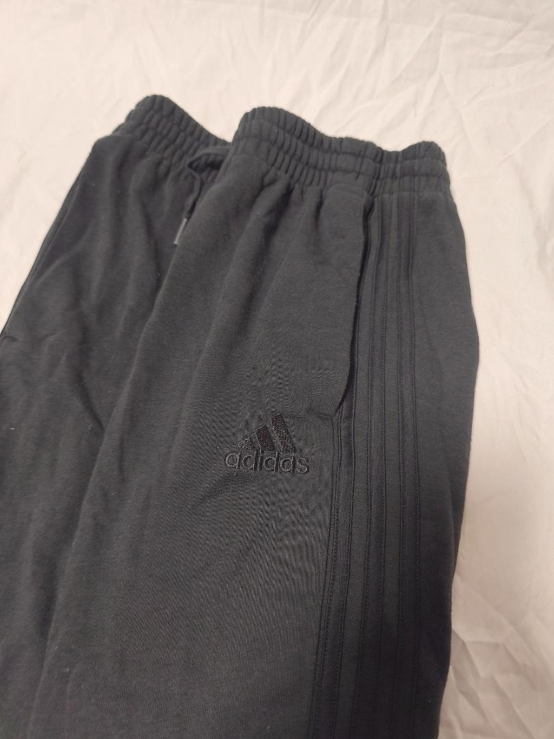 アディダス 黒 スウェットパンツ 7分丈 三本線 ロゴ刺繍 メンズ S です。