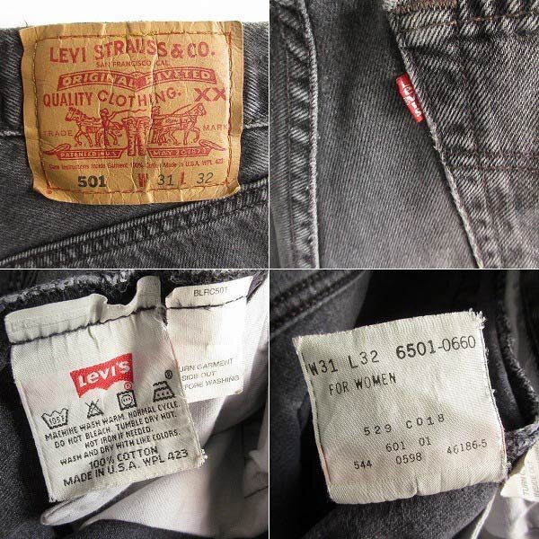 1998年製 USA製 リーバイス501 ヒゲ落ち 後染めブラックジーンズ 実寸W30 FOR WOMEN サルファ 90's アメリカ製 ビンテージ D145