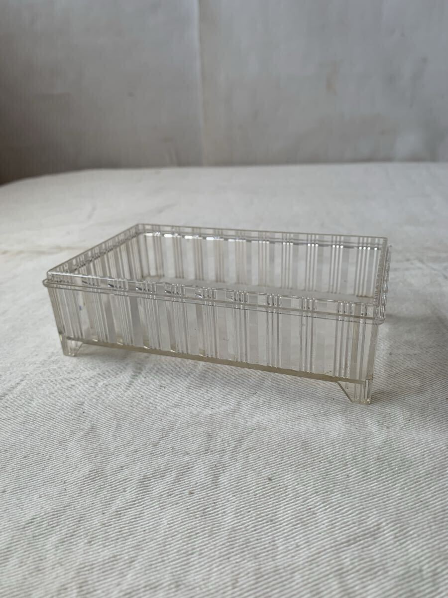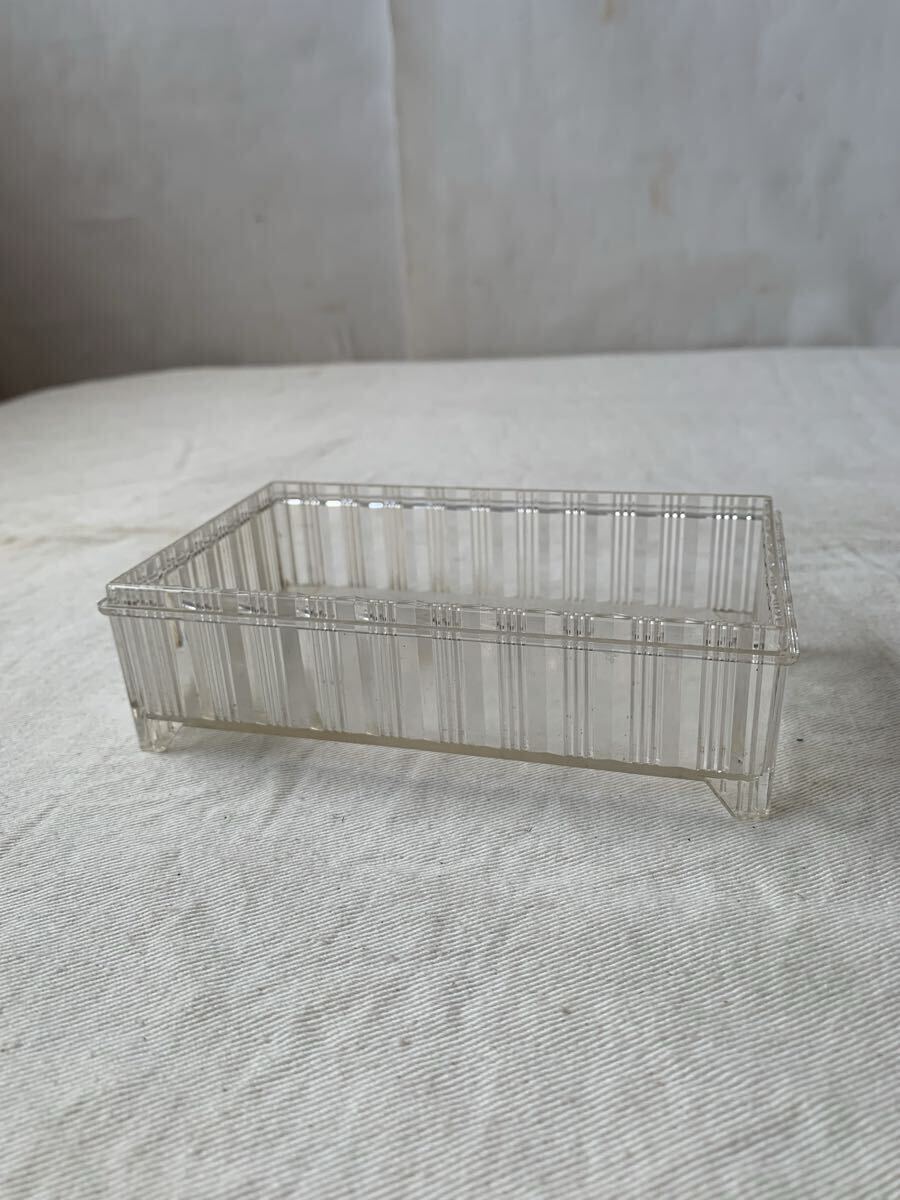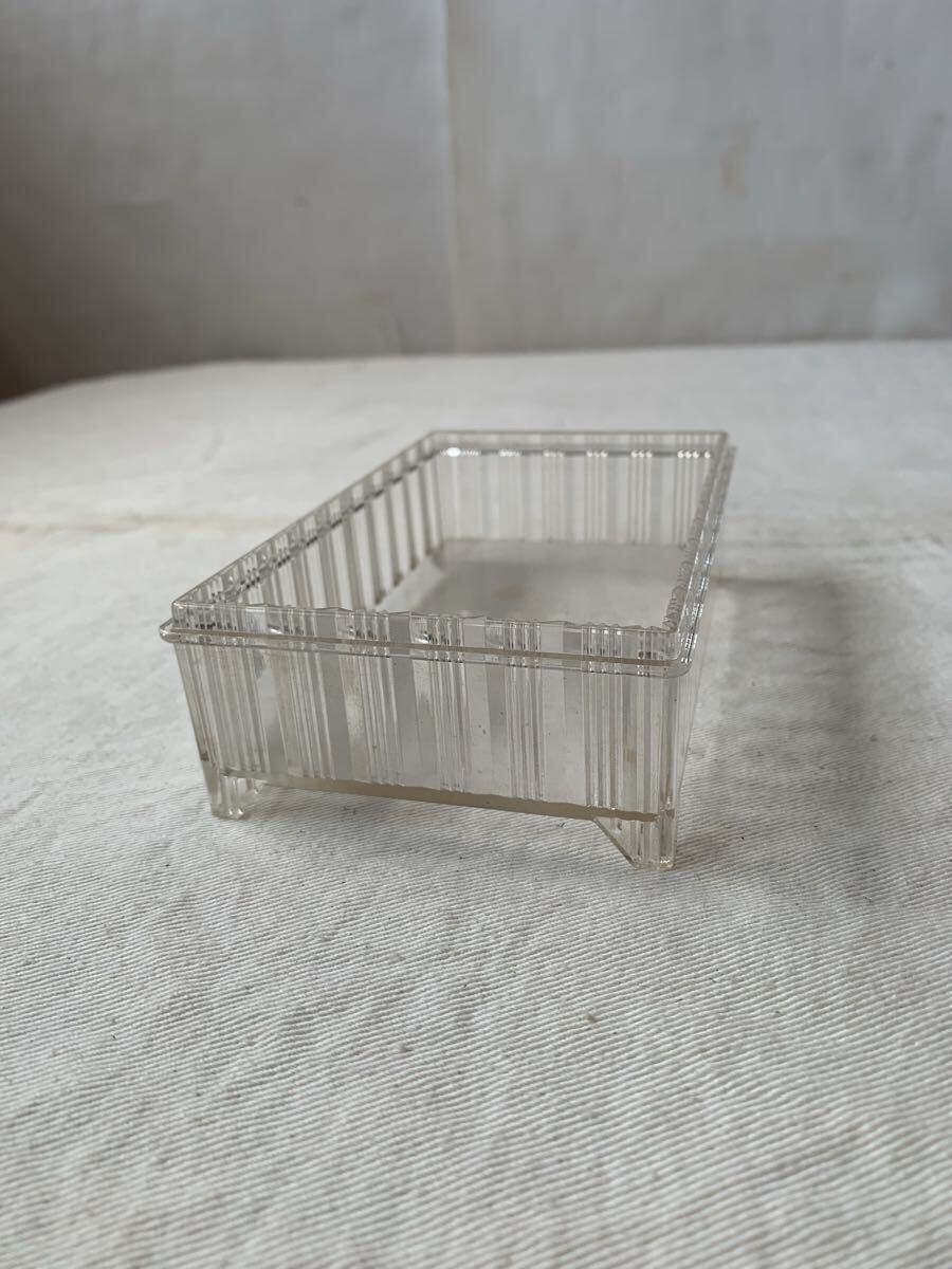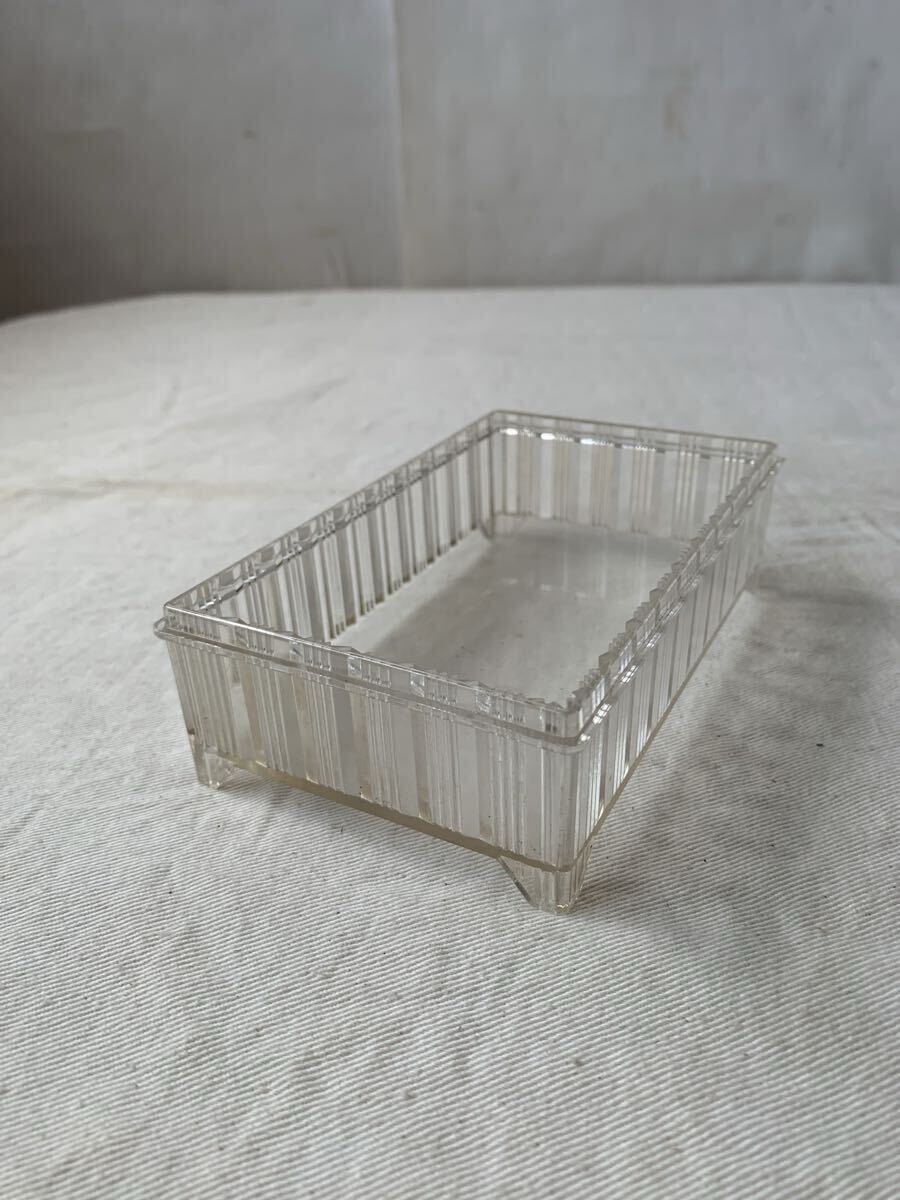 デザインが素敵な蓋付プラスチックケースです。小物やアクセサリーなどを入れる収納箱として、お部屋のインテリアやお店のディスプレイ、イベント出店時の什器として使って頂くと素敵だと思います。
