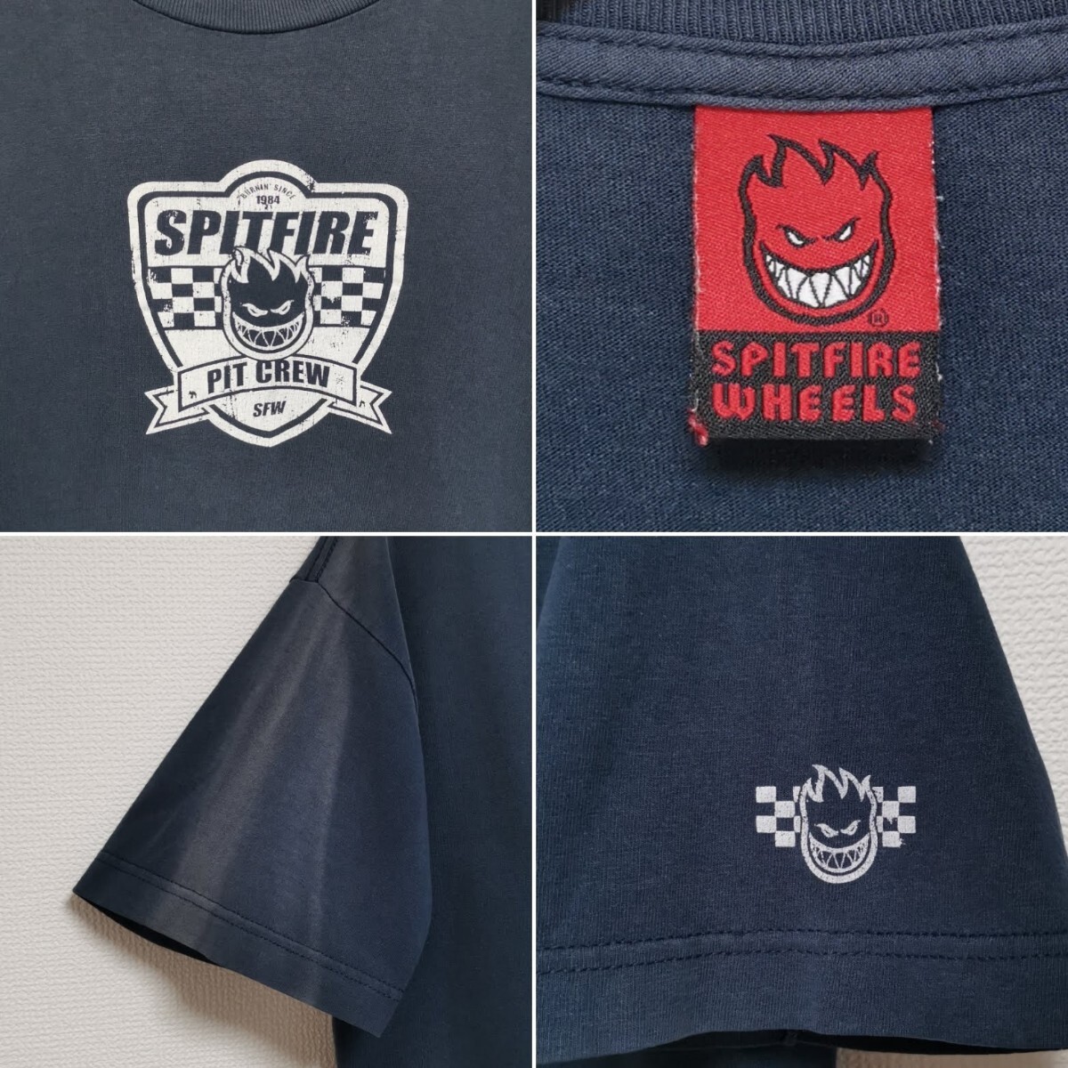 【コメント】:2000年代のSPITFIRE Tシャツです。USA製、オールドタグ、希少なチェッカーエンブレムロゴのネイビーボディになります。リブに擦れと全体的にフェード有りのお品です。昔のモノですので一応古着扱いでお願いします。
