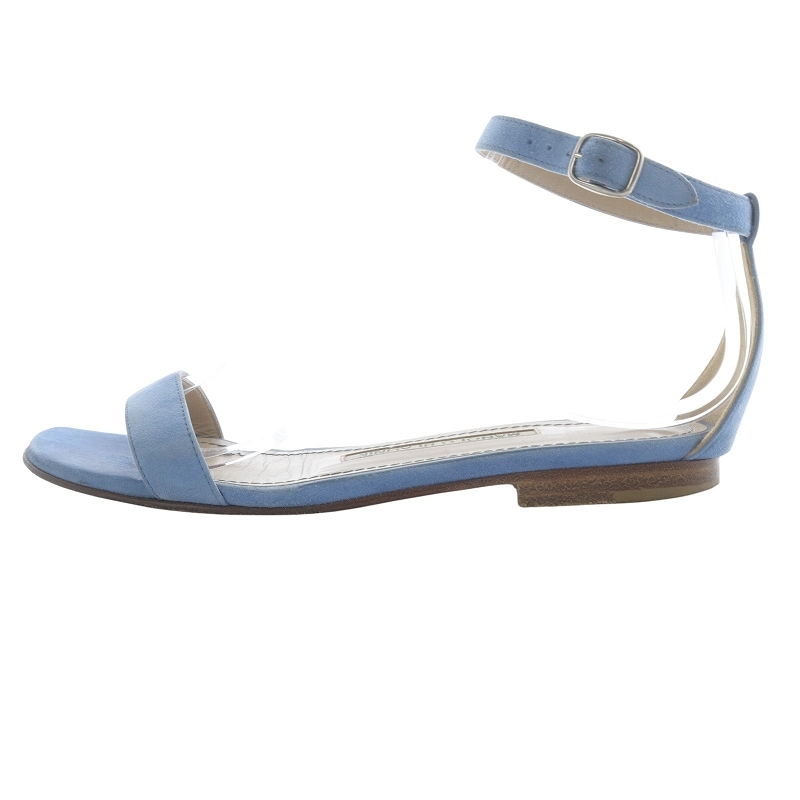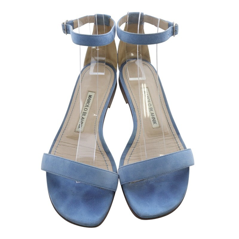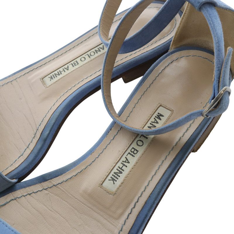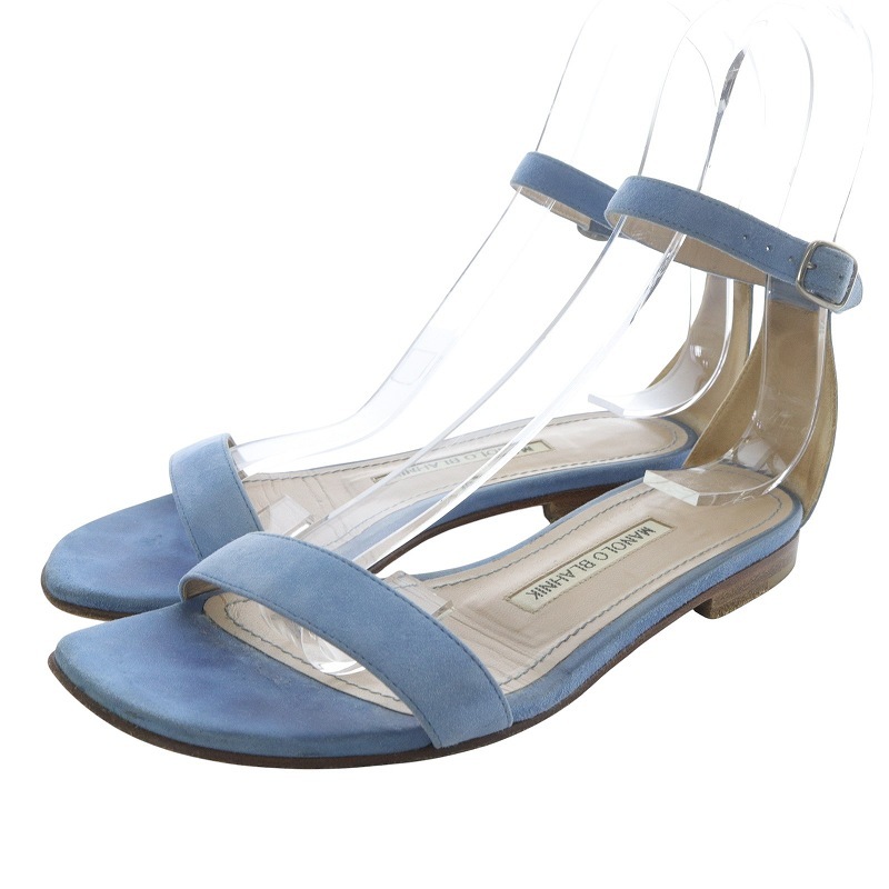 マノロブラニク MANOLO BLAHNIK CHAFLAHI フラット ストラップサンダル スエード 36 水色 ライトブルー /SR50 レディース