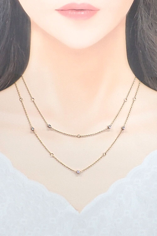 コメントベゼルセッティングのダイヤモンドがキラリと煌めく、ステーションのネックレスです。ロングネックレスなのでそのままでリラックスした印象に、2重にするとエレガントな雰囲気のお品です。ダイヤモンドは表裏両面にセットされており、トップの向きを気にせずお召いただけます。