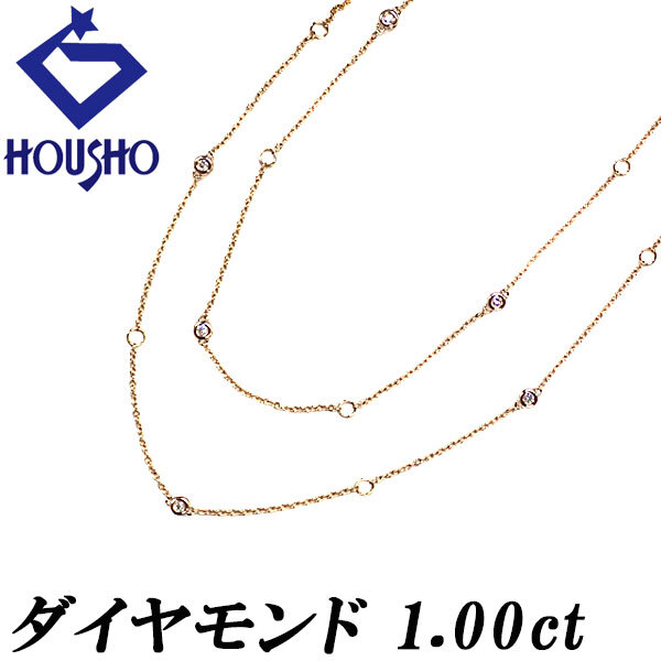 ダイヤモンド ネックレス K18ピンクゴールド 2way ステーション ロング 送料無料 中古 宝正 900221
