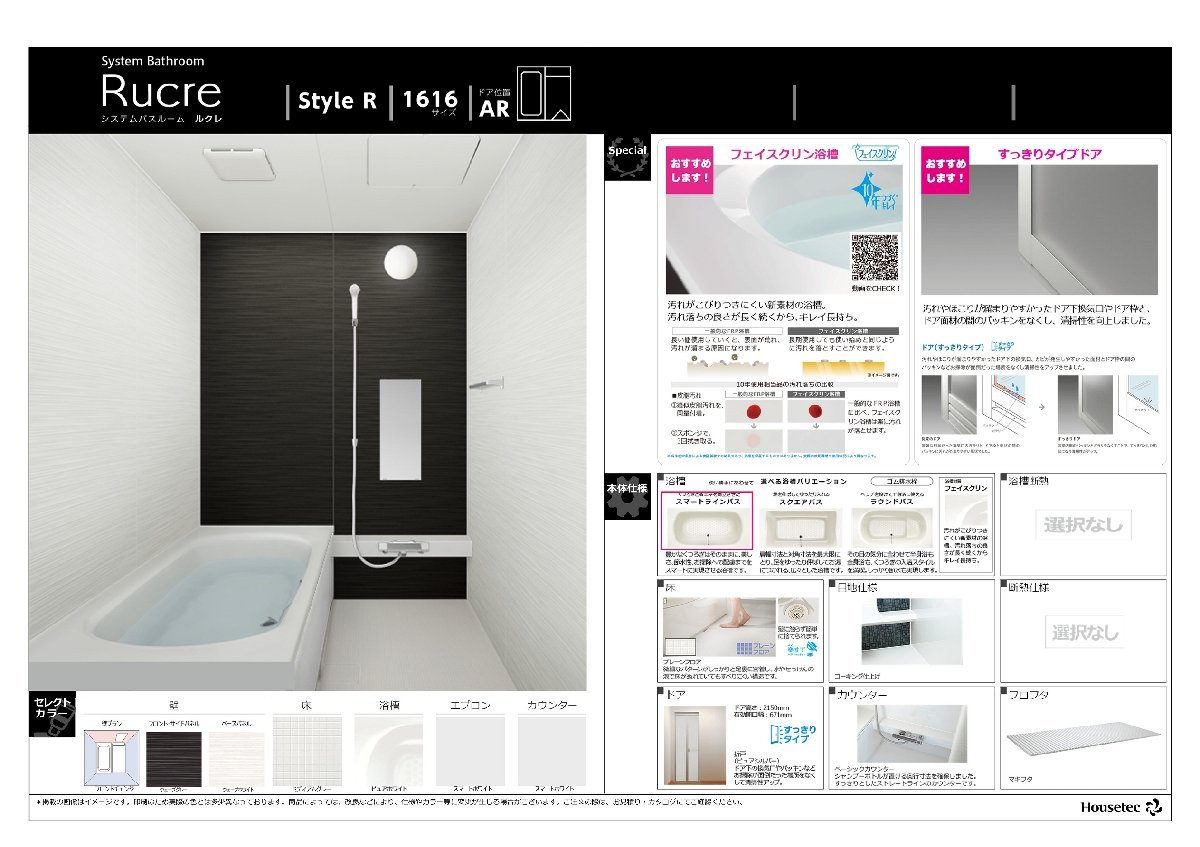 | 商品名 | 新品★ハウステック製システムバスルーム Rucre(ルクレ)スタイルR 1616タイプ | |||