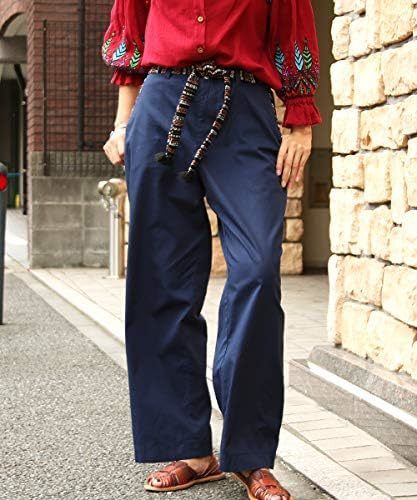 TITICACA エスニチノパンツ L ネイビー エスニック × コットン × チノパンツ 民族調のジャガードリボンベルト付き [チチカカ]