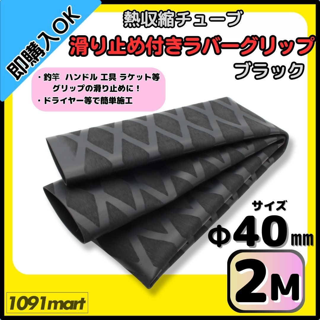 【送料無料】熱収縮チューブ ラバーグリップ Φ40㎜ 2m (100㎝×2本) ブラック 滑り止め加工 グリップの補強に 釣竿 工具 ラケット