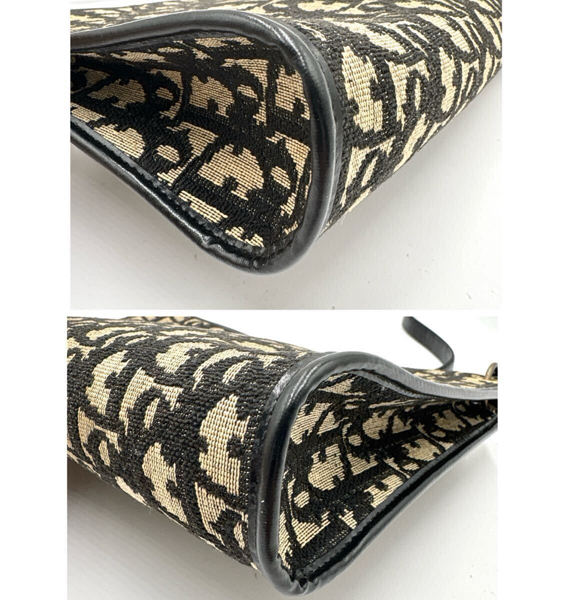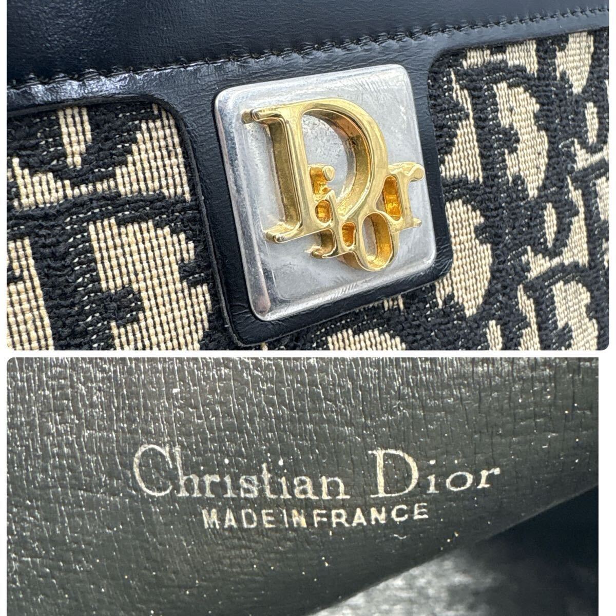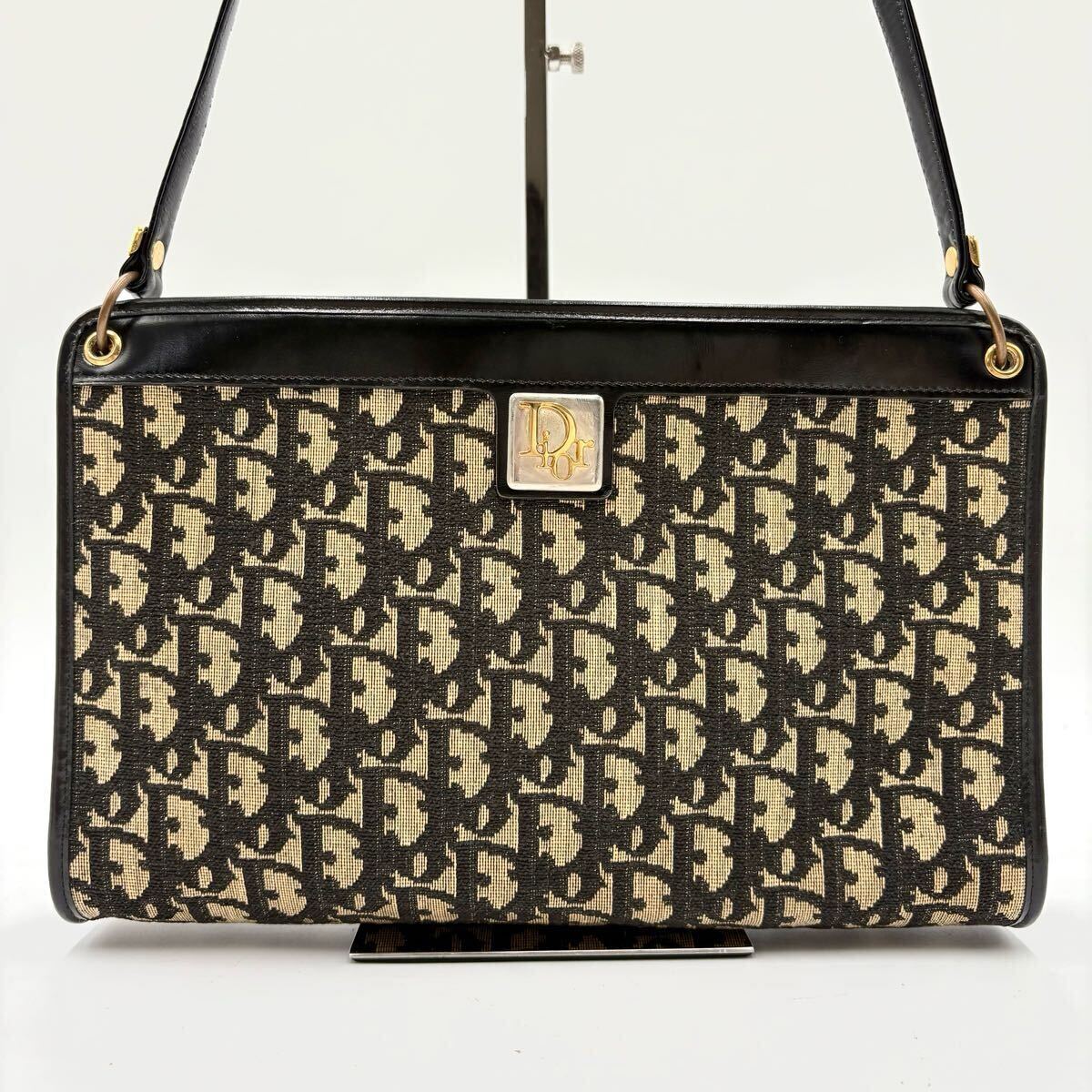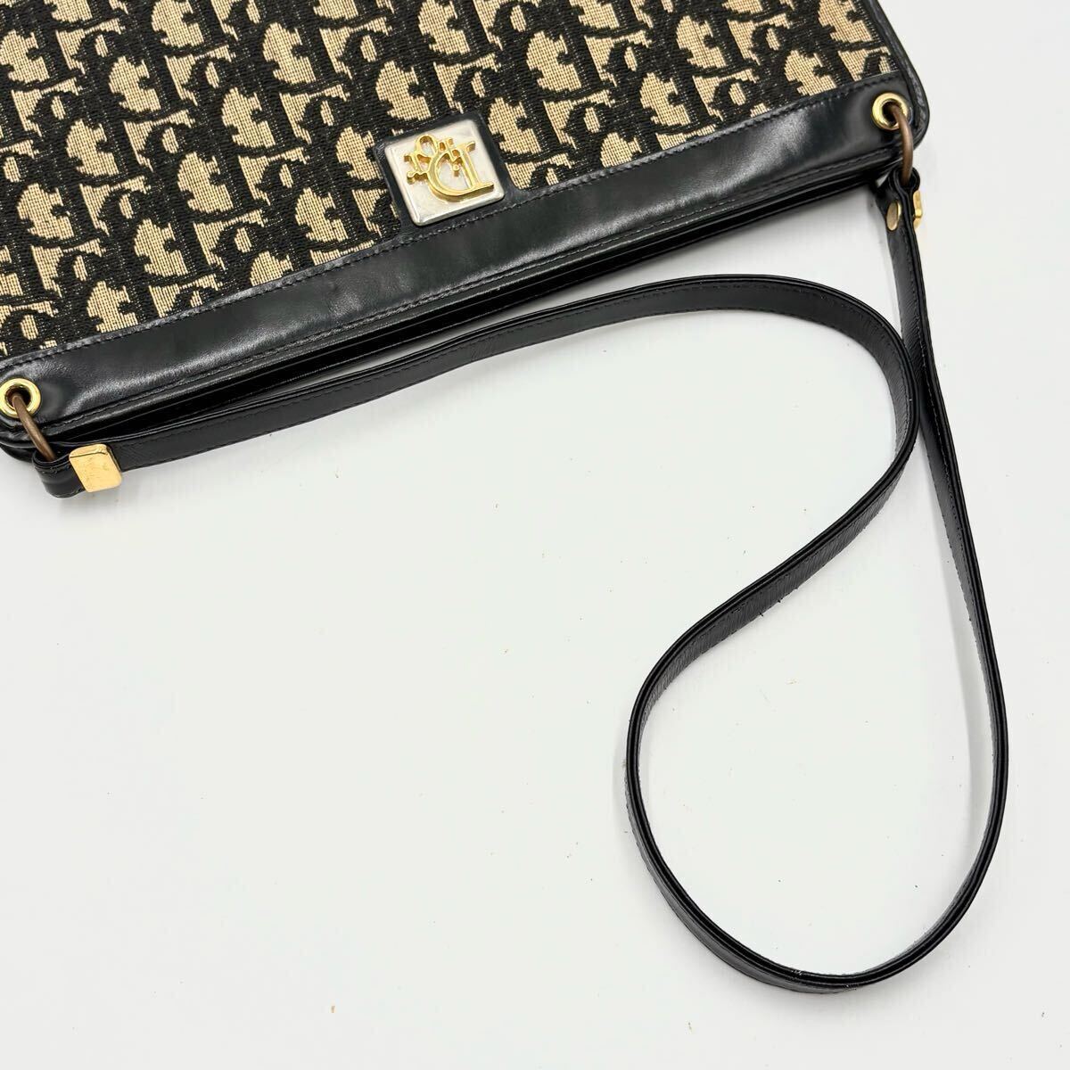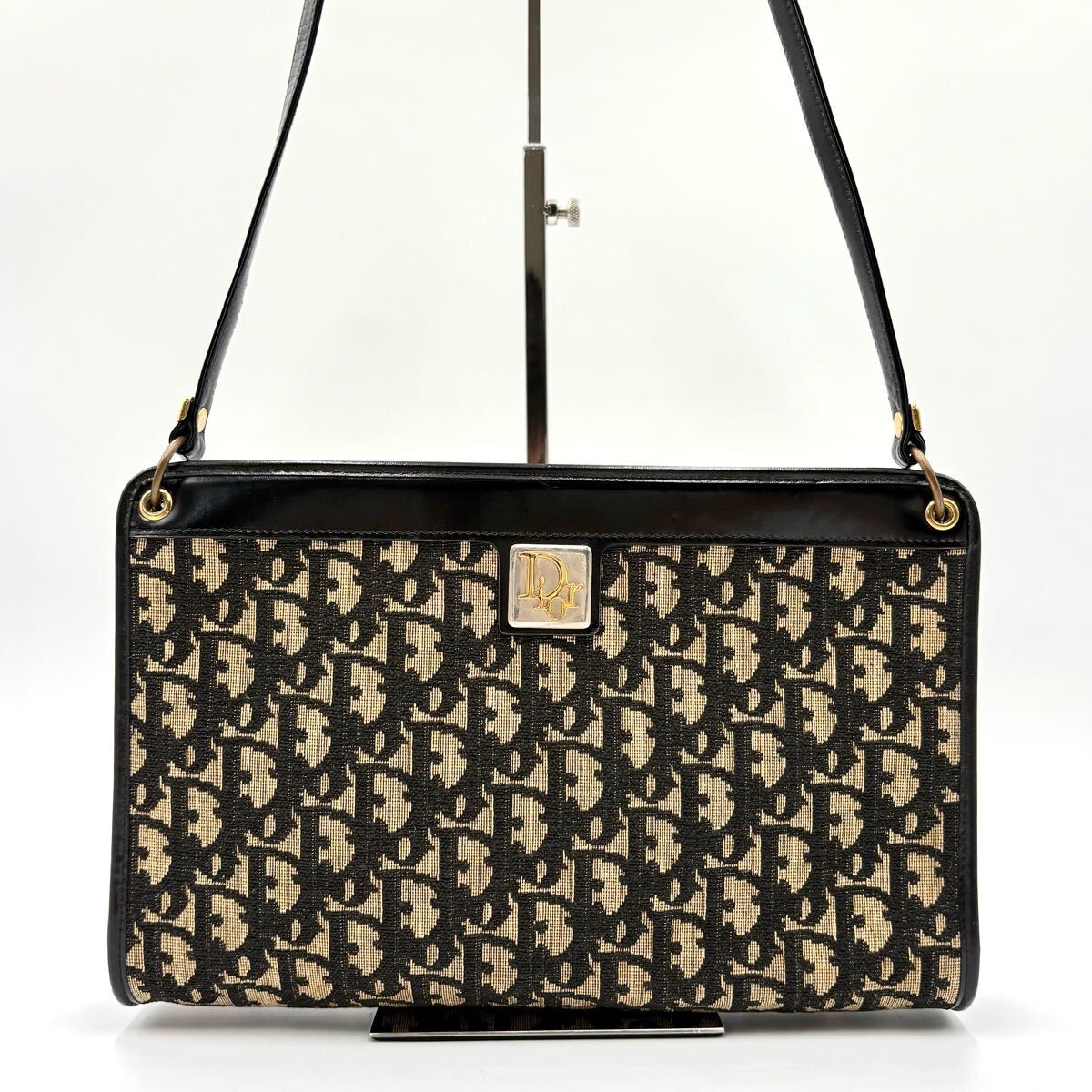 極美品●Christian Dior クリスチャンディオール トロッター柄 ゴールド金具 ショルダーバッグ 肩掛け鞄 ジャガード ネイビー 紺