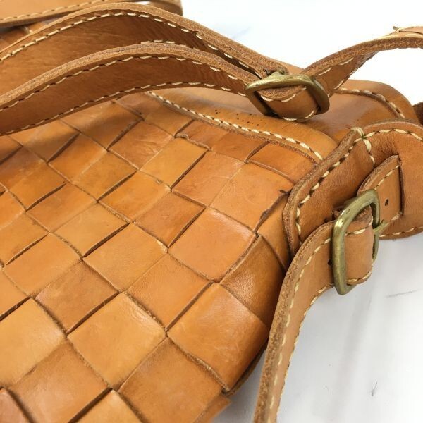 ハンドメイド/編み本革☆レザーメッシュ/ショルダーバッグ☆キャメル/茶/ブラウン☆管NO.XB1-64