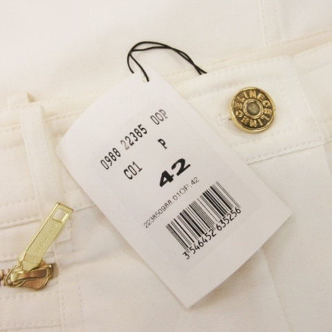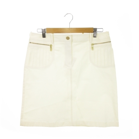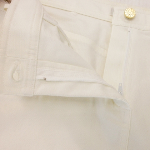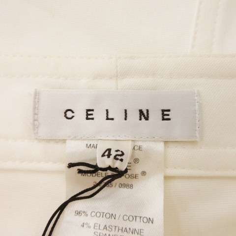 セリーヌ CELINE タイトスカート ミニ ジップフライ ストレッチ ゴールド金具 大きいサイズ 42 15 白 ホワイト ■GY19 レディース