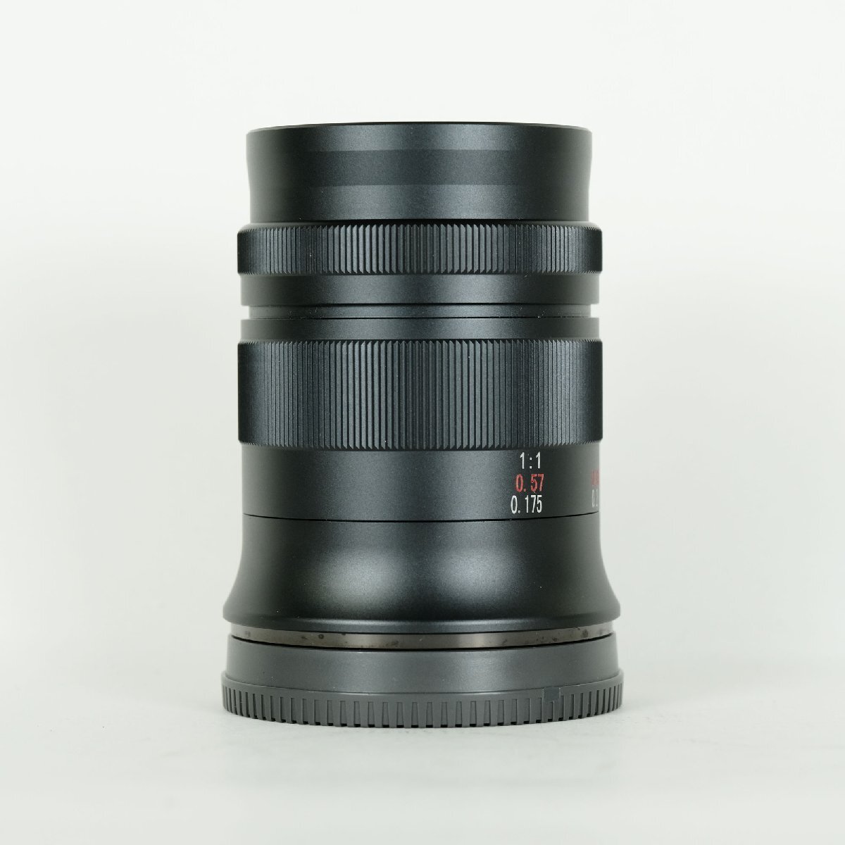 最短撮影距離17.5cmで等倍マクロ撮影が可能なマニュアルフォーカスレンズで、金属製の軽量ボディと内部フォーカス設計により高い操作性を実現し、デクリック式の絞りリングと9枚羽根による滑らかなボケ味で静音撮影にも対応します。