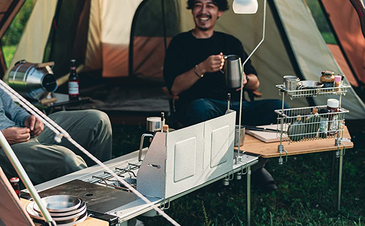 自由なレイアウトで1.5ユニット幅のL字型や3ユニット幅のストレートでの使用など、さまざまなバリエーションで囲える風防です。設置用のポールを連結して、ランタンハンガーやユニットフレームと接続して使用することが可能です。※こちらの商品をご使用の際は、別売りクランプ(CK-300 テーブルトップアーキテクトクランプ)が2点必要となります。ご購入の際はお気をつけください。