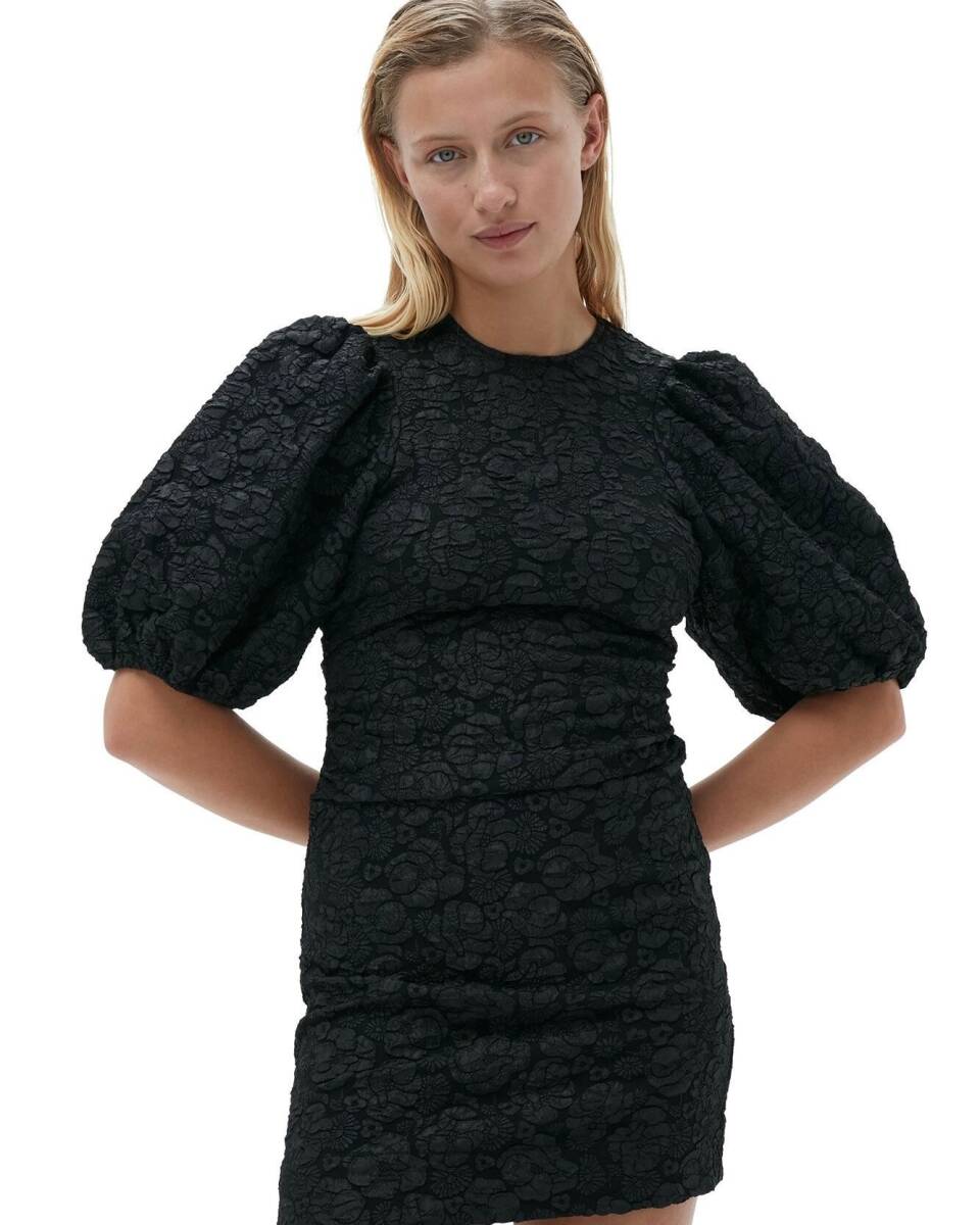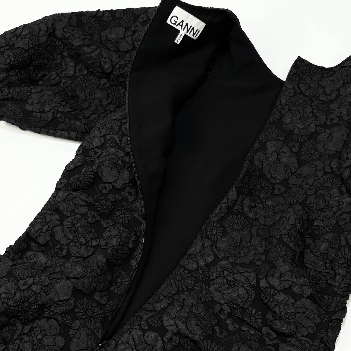 美品 GANNI ガニー 23AW Stretch Jacquard Mini Dress ストレッチジャガード パフスリーブ ミニドレス 6663 36 半袖 ワンピース SSM5372