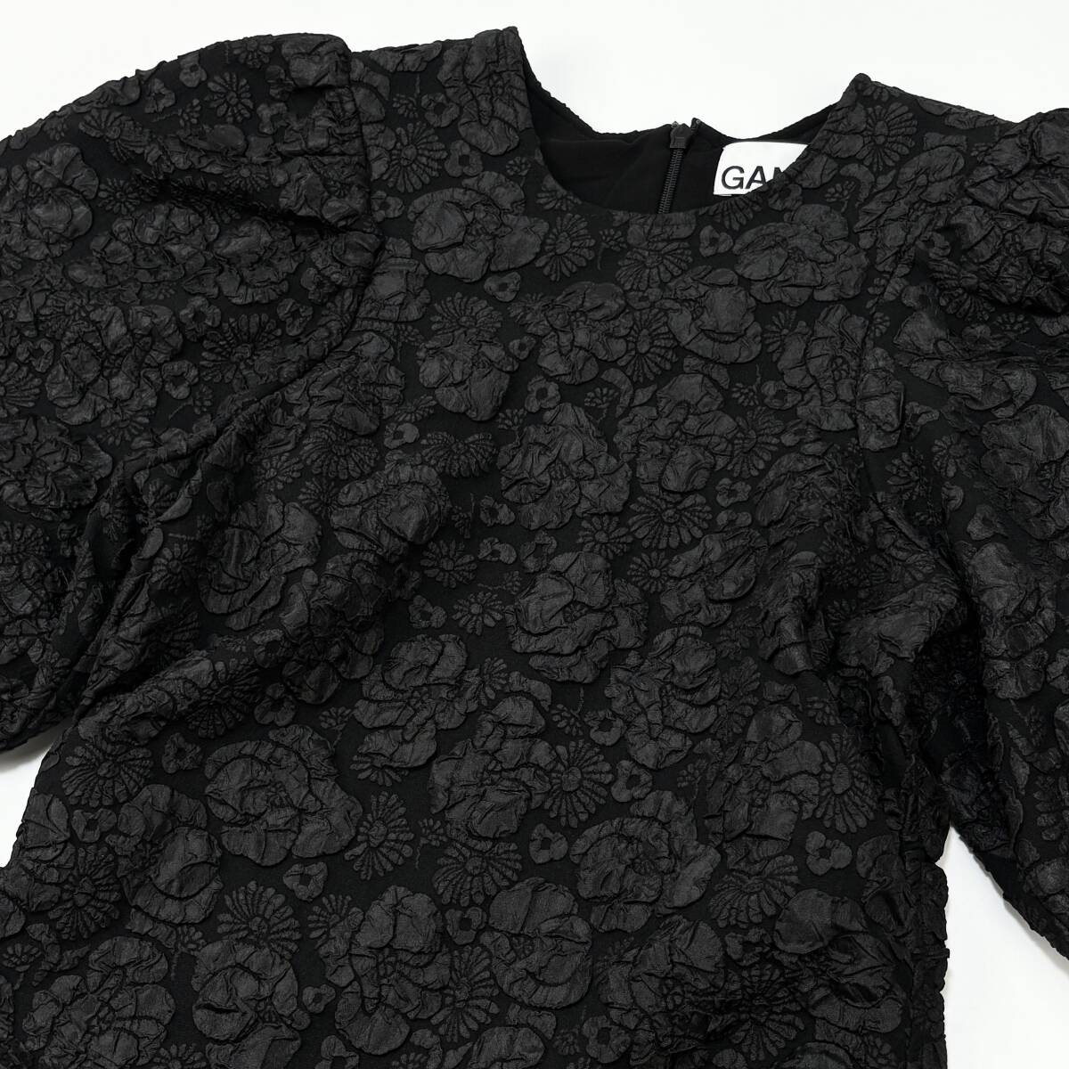 フローラル柄をジャガード織りで表現しており、ボリューム感のあるパフスリーブが特徴的。