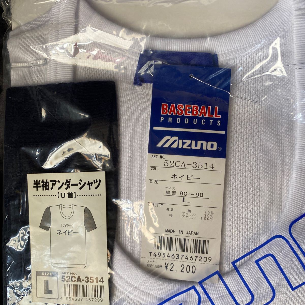 D95【新品未使用】MIZUNO アンダーシャツ *サイズL ホワイト×ブラック スポーツ 運動