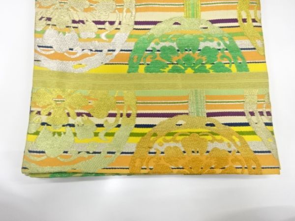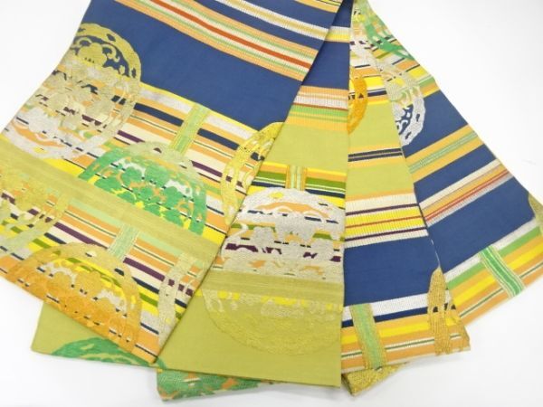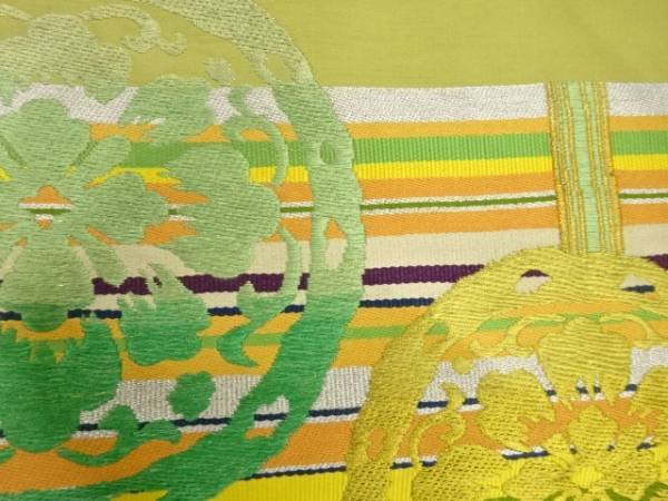 両面共に帯幅部分折れ山線に薄くすみがあります。その他、織り傷・薄アクがあります。状態は大変良いです。着用可能です。採寸:検品:花内・木村 撮影:花内