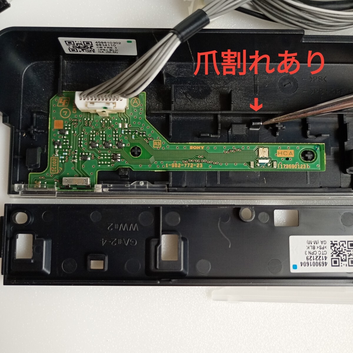 基盤型番確認のため写真追加。内部カバー取外しの際の爪割れがありますので必要に応じて補修ください。