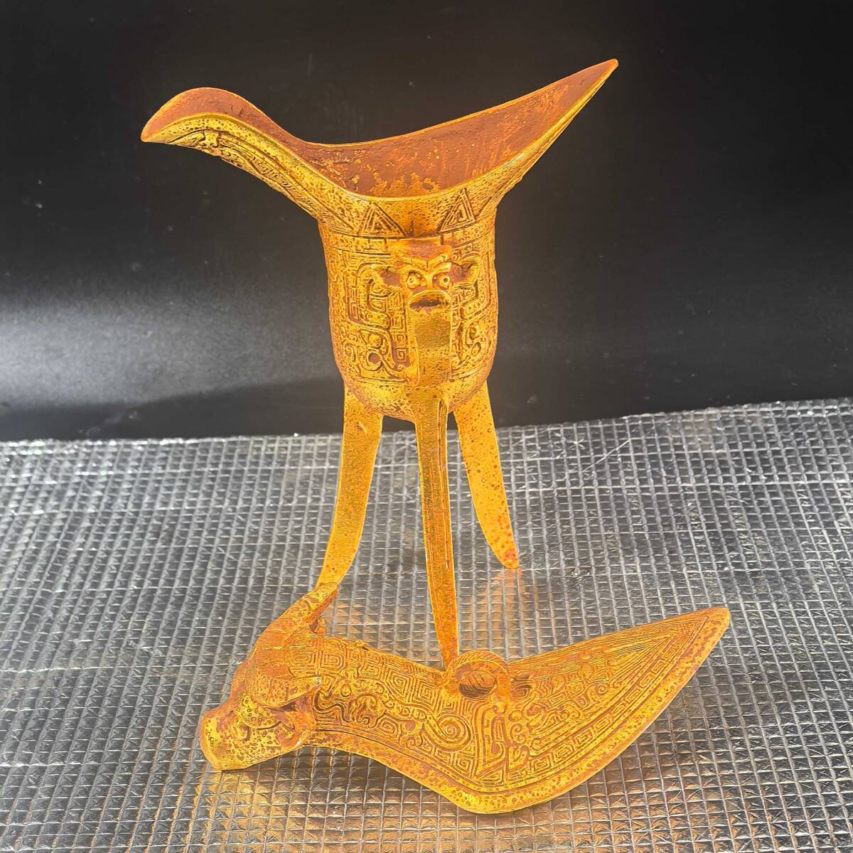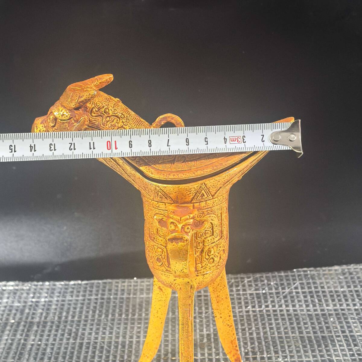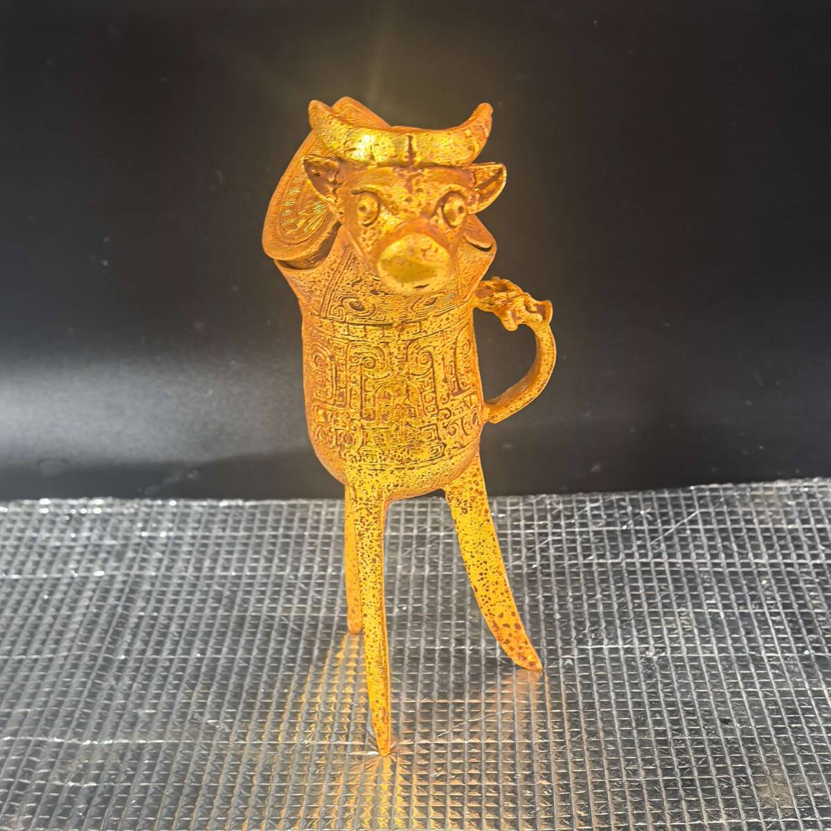 西周時期 銅彫 牛獣 爵杯 酒杯 置物 文案 古擺件 時代物 古董品 骨董 收集 旧家蔵出し 唐物 中国古玩 古美術品
