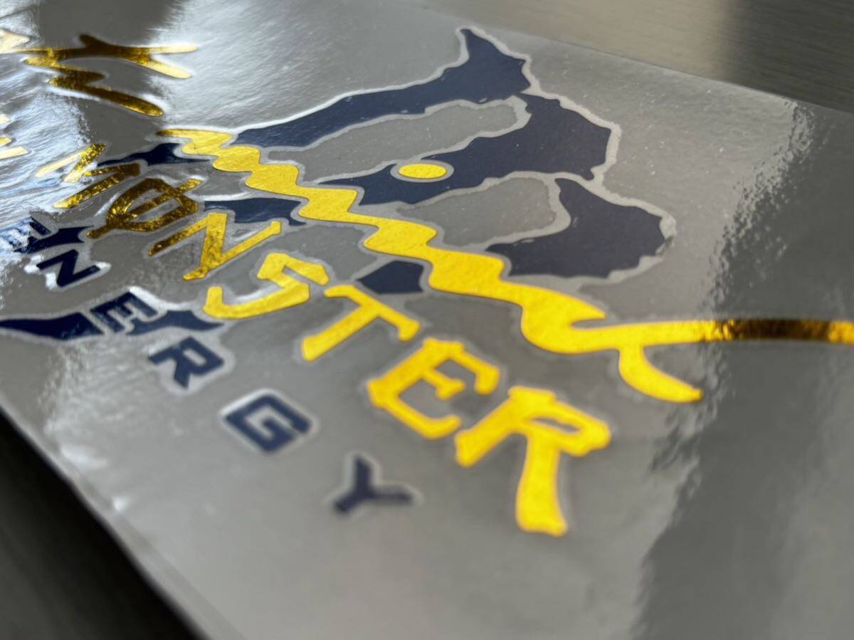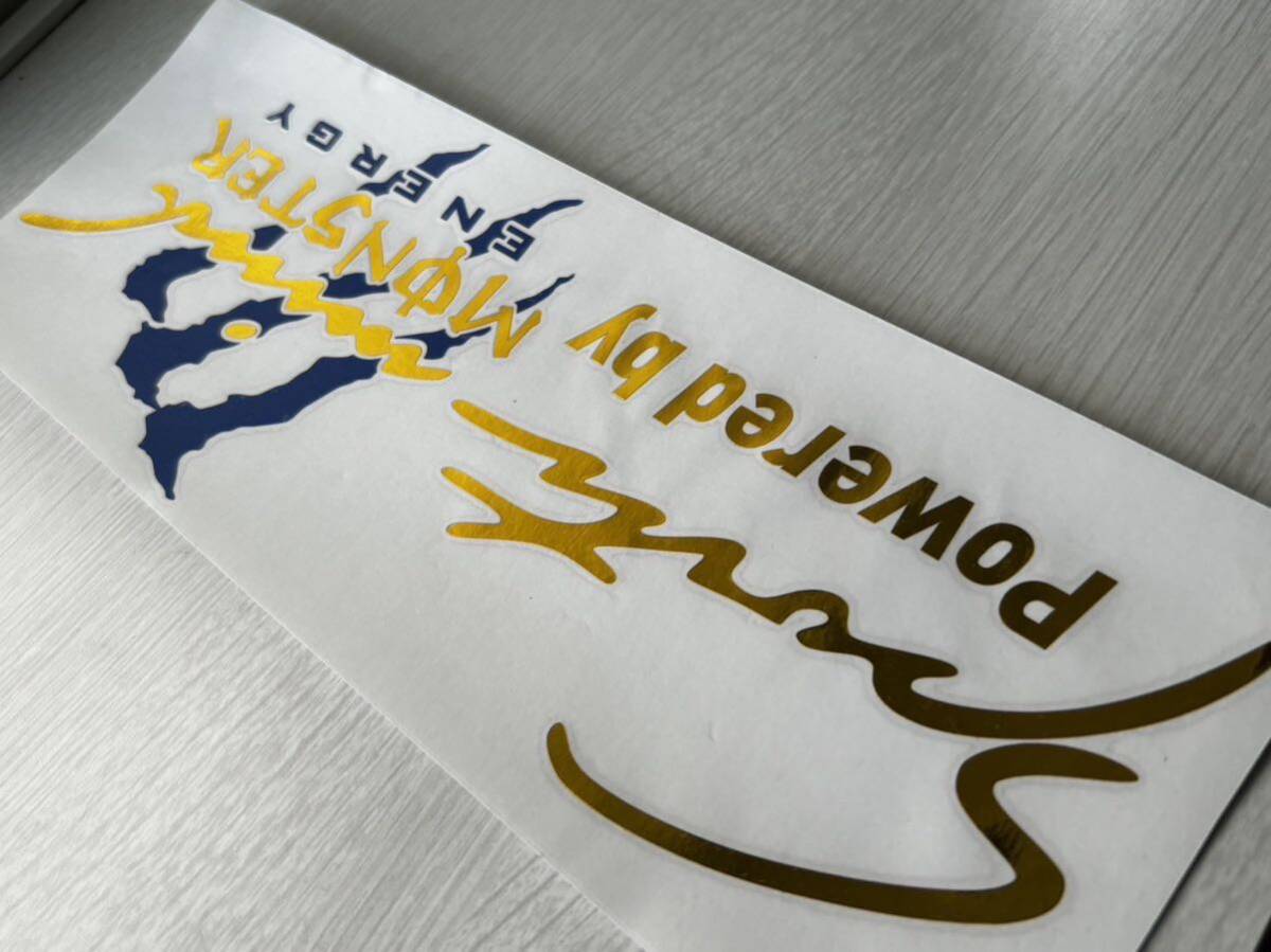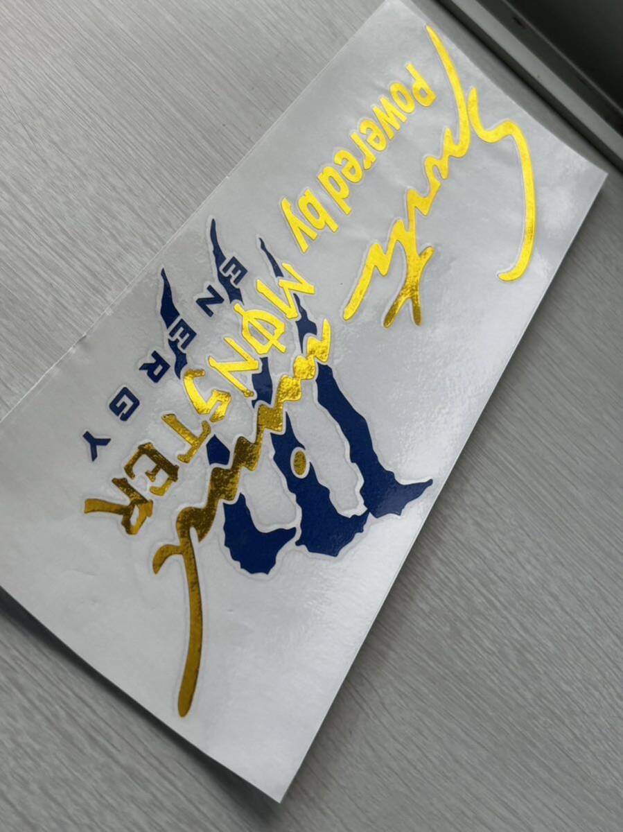 Sports Mind MONSTER ENERGY モンスター・エナジー 金メッキ ステッカー 新品 青色(紺色) です。文字だけが残るタイプです。