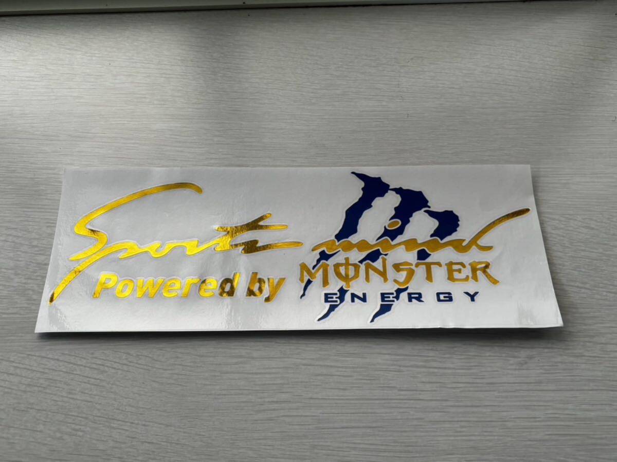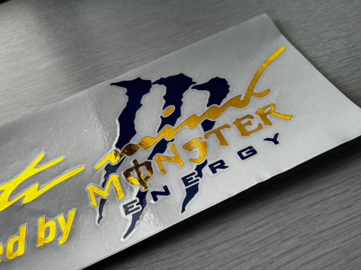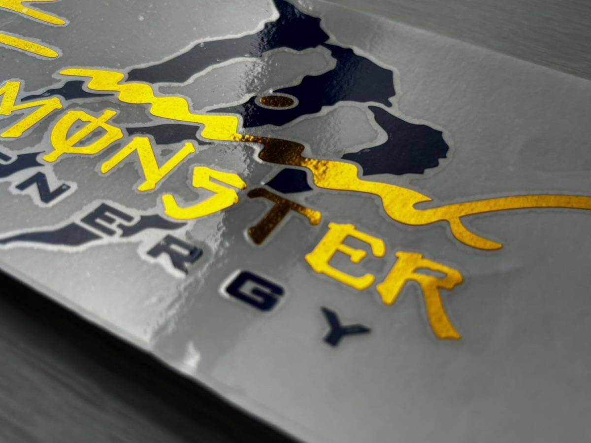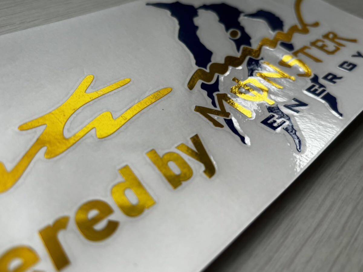 Sports Mind MONSTER ENERGY モンスター・エナジー 金メッキ ステッカー 新品 青色(紺色) です。文字だけが残るタイプです。