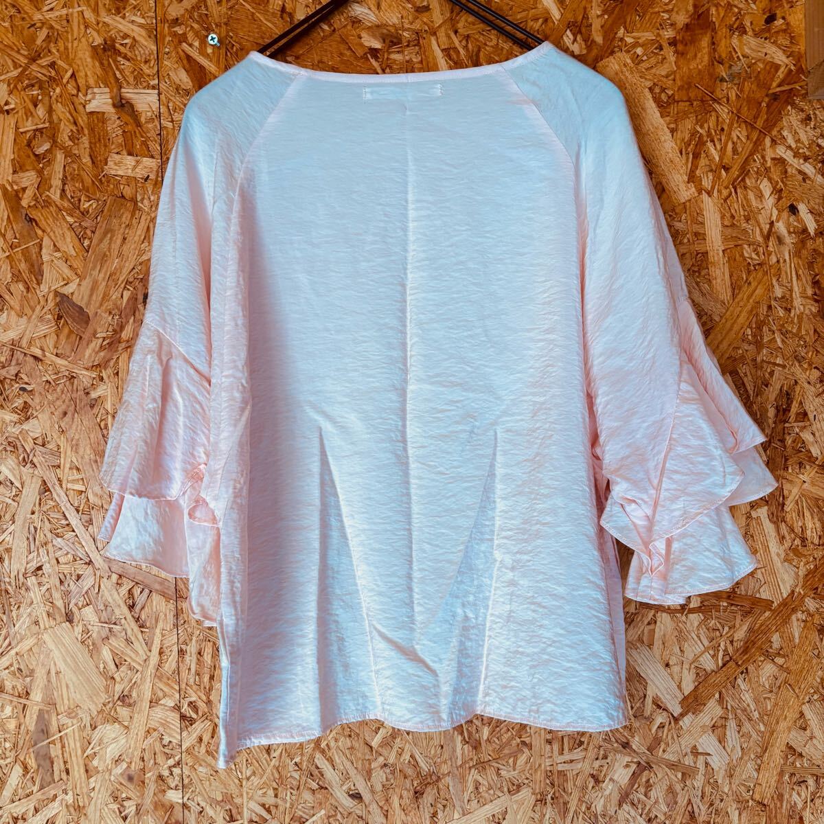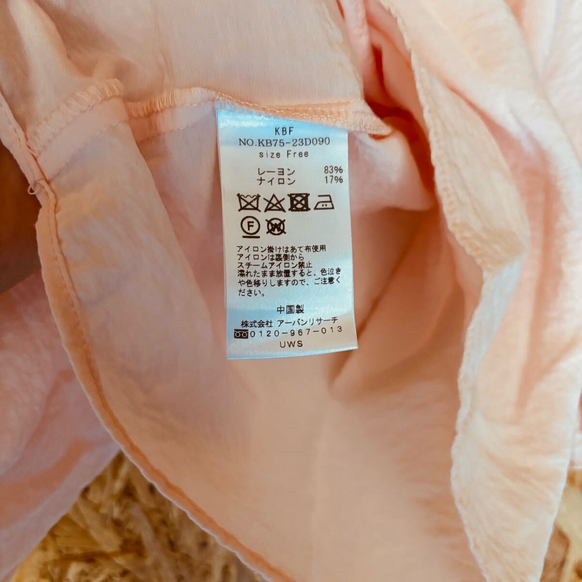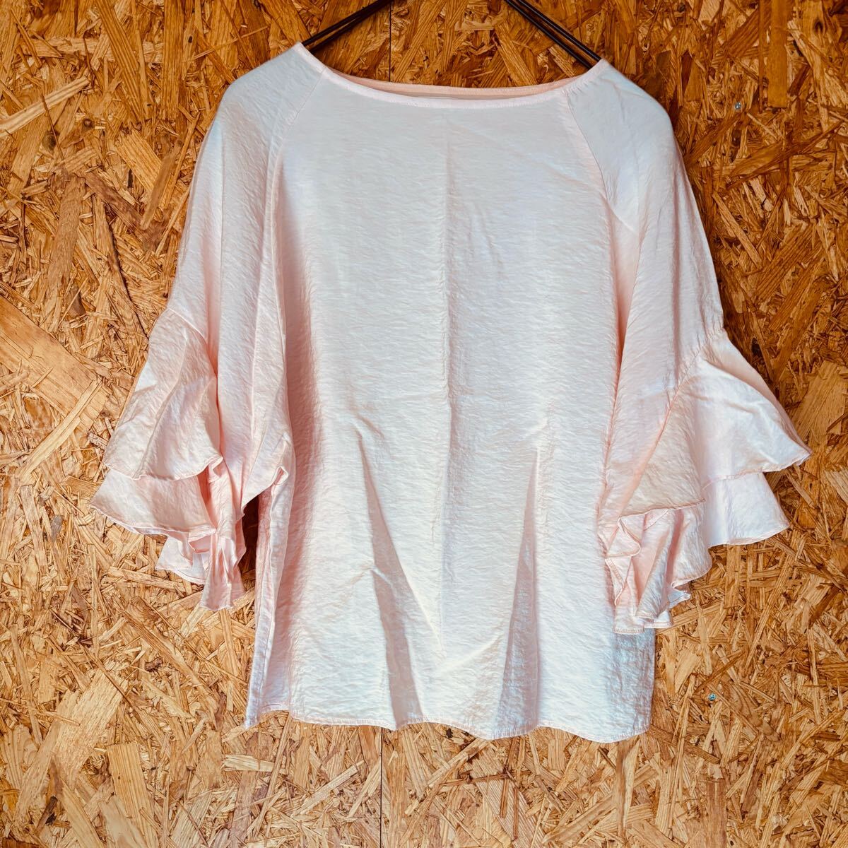 美品 KBF 七分袖カットソー 袖フリル ピンクオレンジ系 レディース トップス 4818
