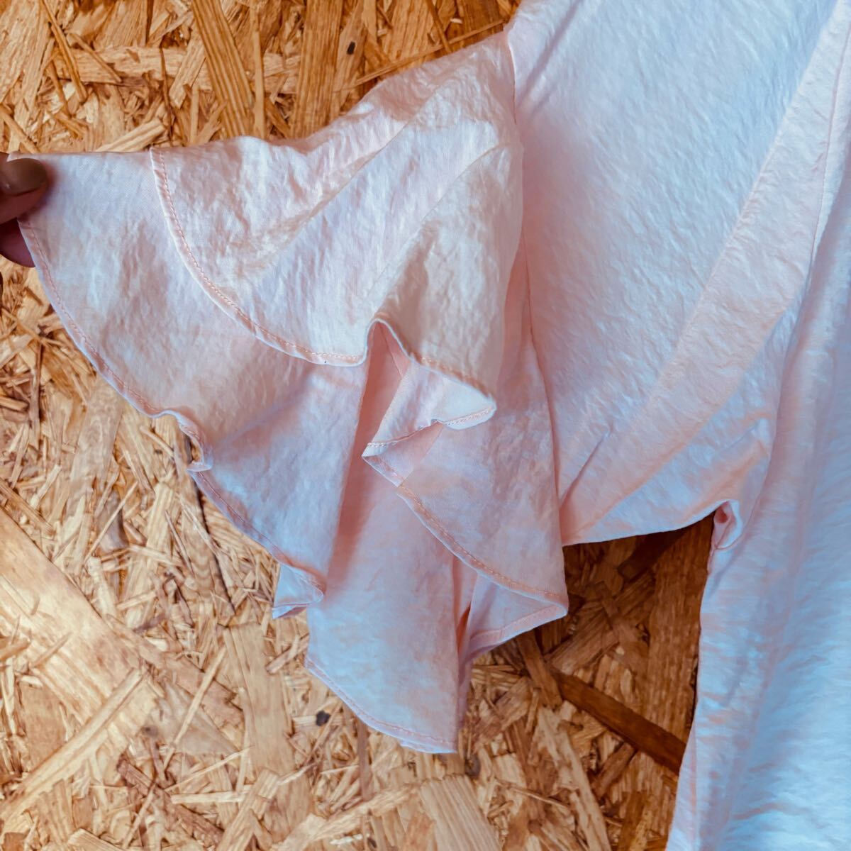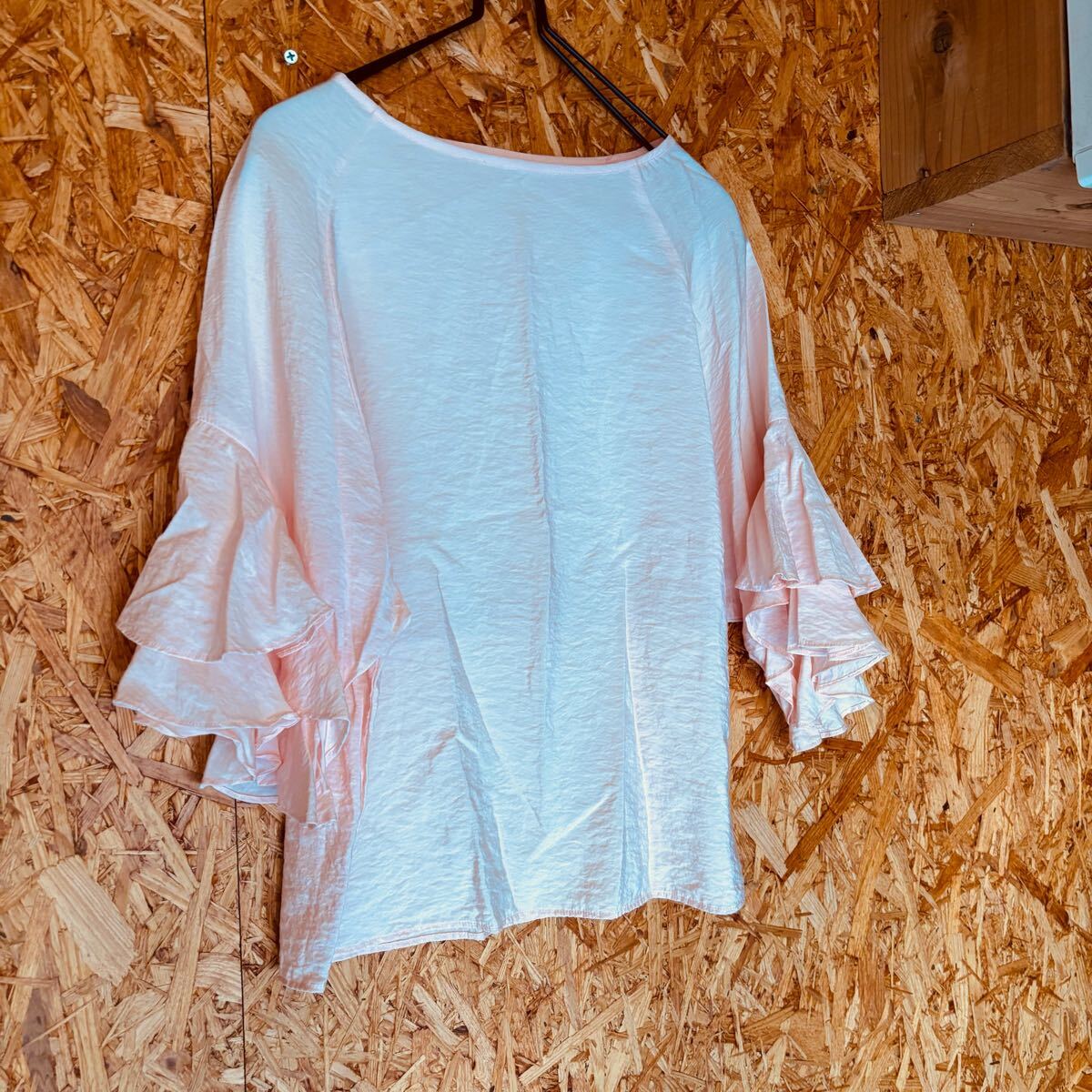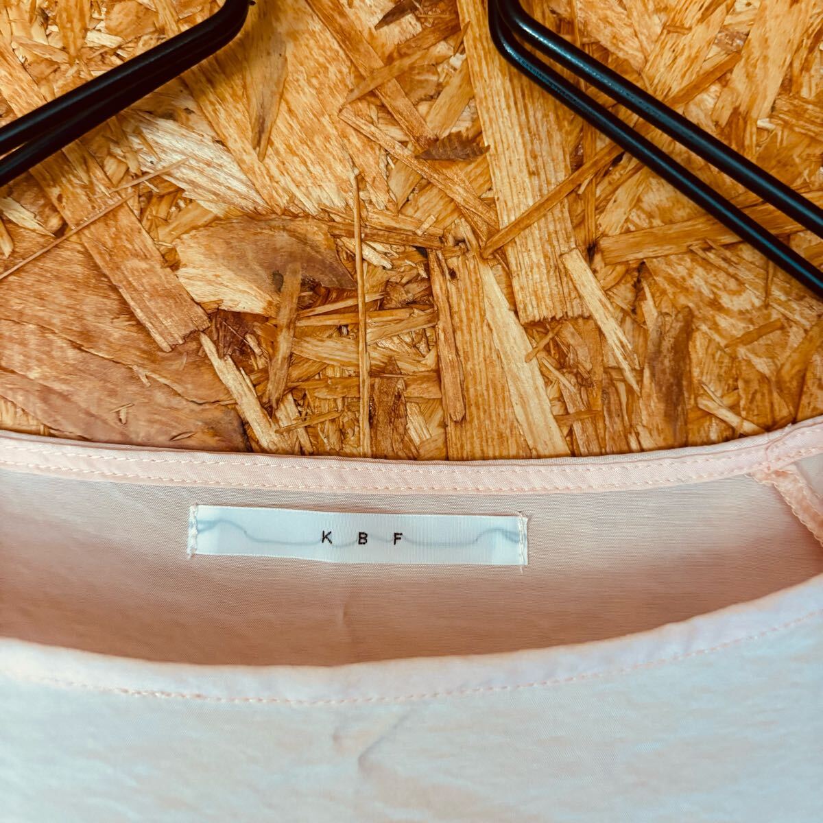 美品 KBF 七分袖カットソー 袖フリル ピンクオレンジ系 レディース トップス 4818