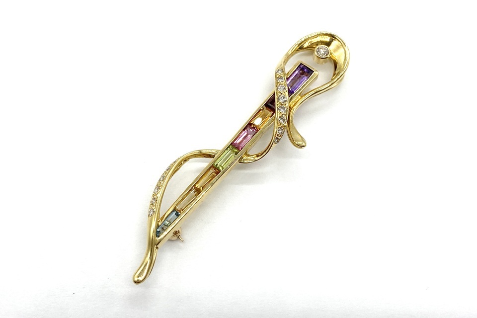 品名 | 【Amethyst 】 K18アメシスト ガーネット トルマリン ペリドット ブルートパーズ 他 ダイヤモンドペントップ兼ブローチ |