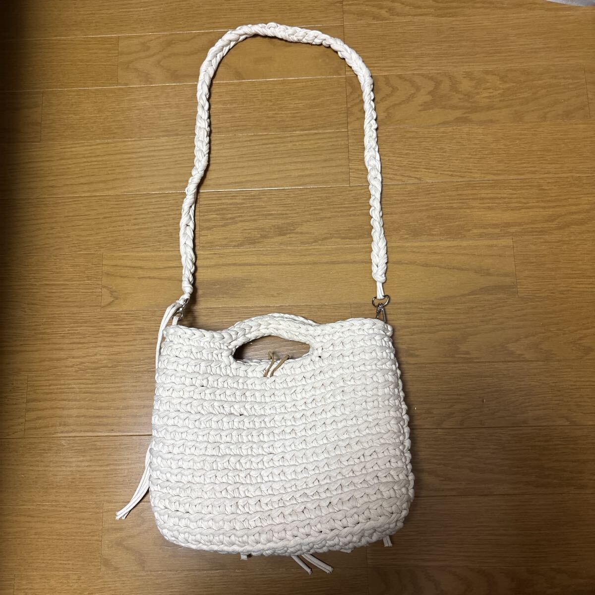 ●リサイクルヤーン『ズパゲッテイ』で編みました、斜め掛けショルダーとハンドバッグの2wayバッグになります。