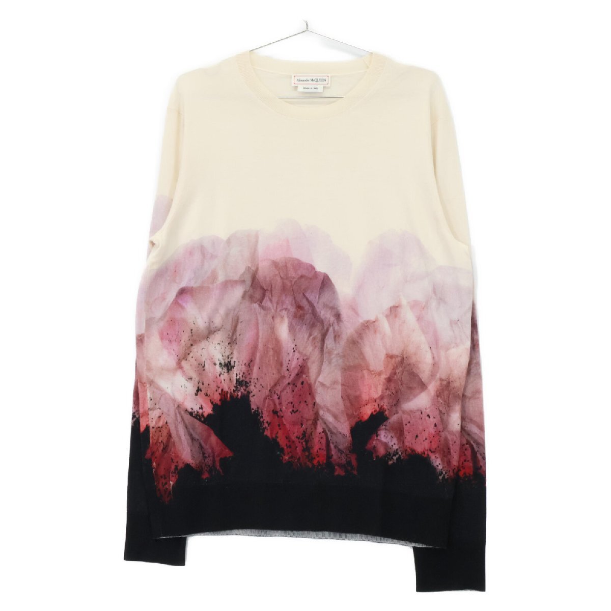 Alexander McQueen アレキサンダーマックイーン ホワイト 総柄 シルク混 長袖ニット 684305 ホワイト M トップス ウール メンズ 中古