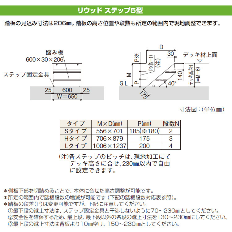 説 明 | リウッドデッキ用オプション ステップ5型 |