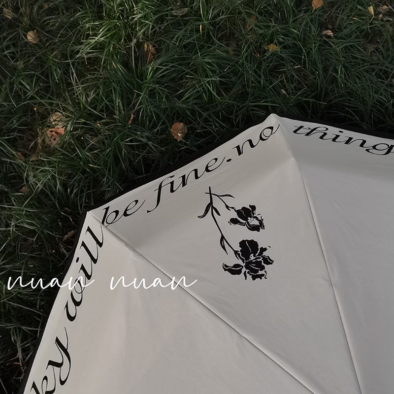 新発売 晴雨兼用傘 折り畳み傘 丈夫 遮光断熱 ins白黒 日傘 花柄 お洒落 シンプル 英字 8本骨 UVカット レディース #1