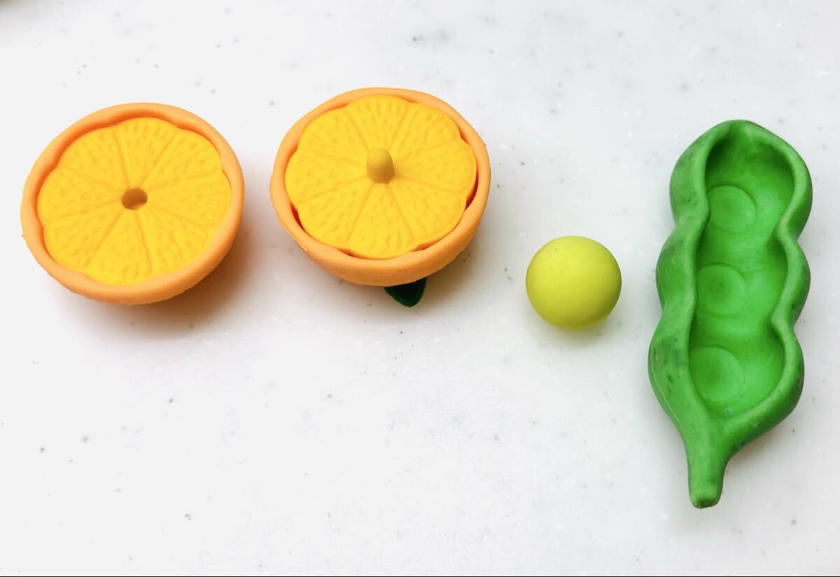 ミカンは半分に割ることができたり、さやえんどうは豆が取り出せたりしてとても可愛いです。