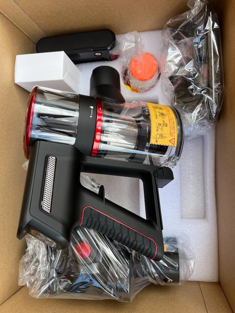 ------------------------------------ ご覧いただきありがとうございます\(^^) 新品・未使用品 即購入大歓迎・無言購入OK◎ まとめ買い歓迎、お気軽にコメントください ------------------------------------- ◎圧倒的に強い吸引力! 強力吸引を生み出すブラシレスモーターを搭載! 最大約23000paの吸引力でゴミをしっかり吸い込む。 さらに自走式「パワフルスマートヘッド」で、軽い力でスーッと前に進み、微細なゴミまでしっかりと吸い込むので、隅々まできれいに。 カーペットや畳の目地に入り込んだゴミもしっかり吸引します。 ◎30分連続使用! 継ぎ足し充電の劣化が少ない、軽量で長寿命なリチウムイオン電池を採用。 標準モード時、連続30分使用可能。 広いお部屋も隅々までキレイにします。 ◎LEDでゴミが見やすい! ベッドの下やテレビの裏の隙間など薄暗い場所でもゴミが見やすい「3灯のLEDライト」を搭載! 明るい場所でもゴミがさらに見やすくなります。 その他にも壁ぎわのゴミもキレイに取りきる「きわぴた構造」や、くるっと小回りが利く設計で隅々まで快適にお掃除できます! ◎スティック&ハンディの1台2役! パイプとヘッドを外すとハンディに。 ハンディタイプは最軽量2.1kgなので、車内などへの持ち運びもラクラク! 汚れが気になったとき、どんな場所も、この一台でサッとキレイにお掃除できます。 ◎お手入れにもこだわり! 使いやすさにもとことんこだわり! 髪の毛が絡まりにくいダストケースや、ボタンを押せばごみが捨てられる「ごみダッシュ」、 分解してダストケースをまるごと水洗いができるなど、嬉しいポイントがたくさん! 毎日使う掃除機だからこそ、使い勝手がいいことは大事なポイントです。 ◎とにかく使いやすい! 充電しておけば、わざわざコードを差さなくともサッと持ち出して使えるのがコードレス掃除機の魅力。 ゴミに気づいた時に、サッと掃除機を持ってきてすぐにお掃除ができます。 コード付き掃除機を出すのは大変…と感じているお客様にオススメです。 |