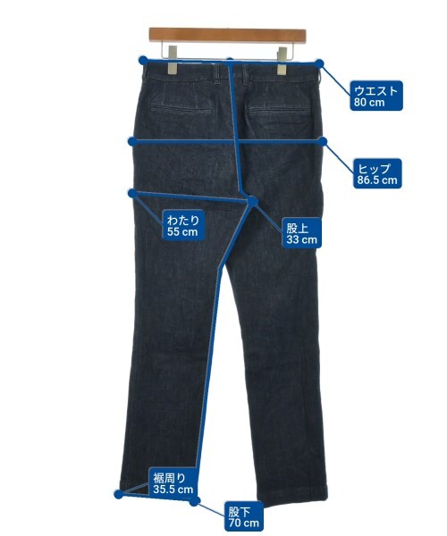 | ウエスト:80cm,裾周り:35.5cm,ヒップ:86.5cm,わたり:55cm,股上:33cm,股下:70cm |