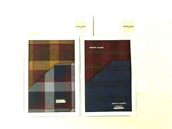 ■新品同様■ pierre cardin ピエールカルダン コットン100% チェック柄 ハンカチーフ ポケットチーフ 2点セット まとめ売り DF8860