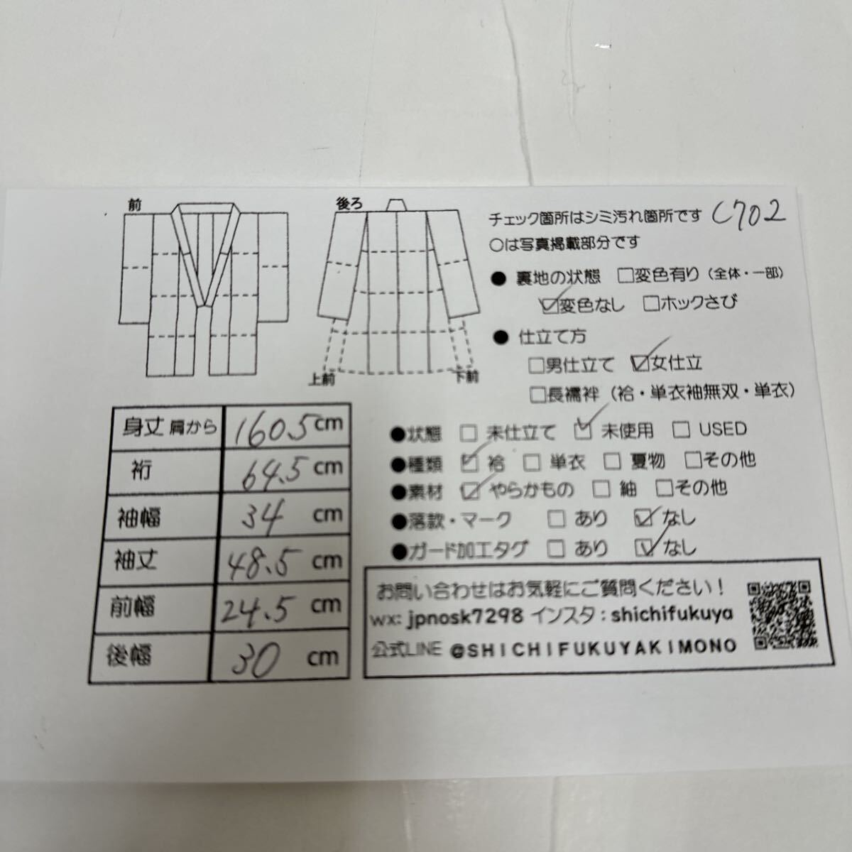 【七福】c702 訪問着 刺繍 正絹 袷仕立て 中国三大刺繍 蘇州刺繍 金狛刺繍 着物 逸品 身丈 約160.5cm 裄 約64.5cm