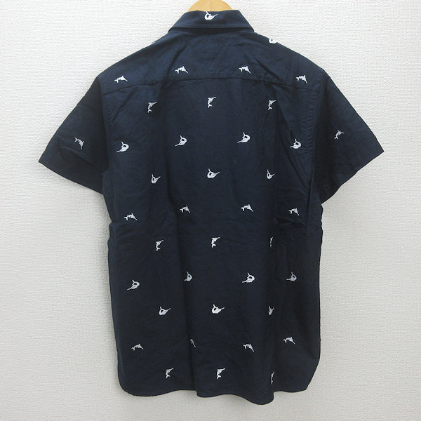 G■トミーヒルフィガー/TOMMYHILFIGER 半袖BDシャツ/イルカ刺繍【XL】紺/men's/121【中古】■