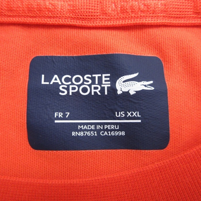 【商品名】 XL★古着 ラコステ 半袖 ブランド Tシャツ メンズ ビッグロゴ 大きいサイズ クルーネック オレンジ