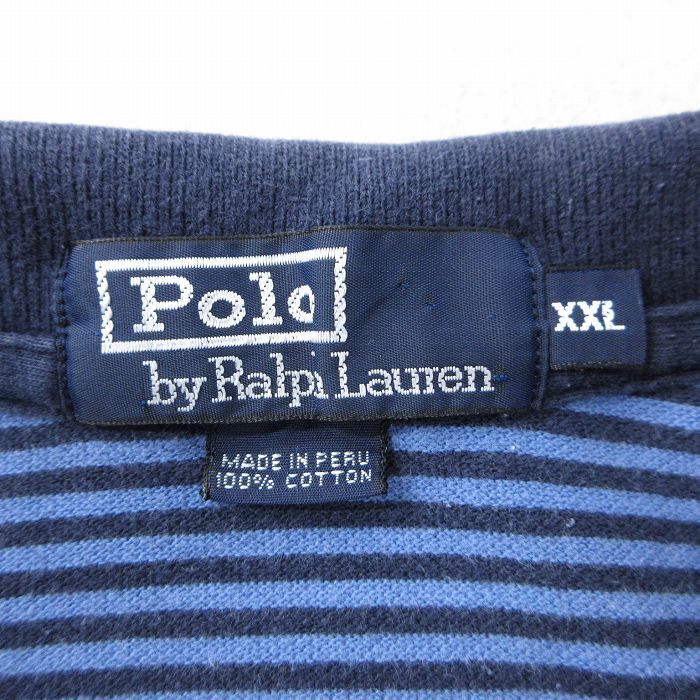 【商品名】 XL★古着 ラルフローレン 半袖 ブランド ポロ シャツ メンズ 90年代 90s ワンポイントロゴ 鹿の子 大きいサイズ コットン 薄紺他 ボーダー