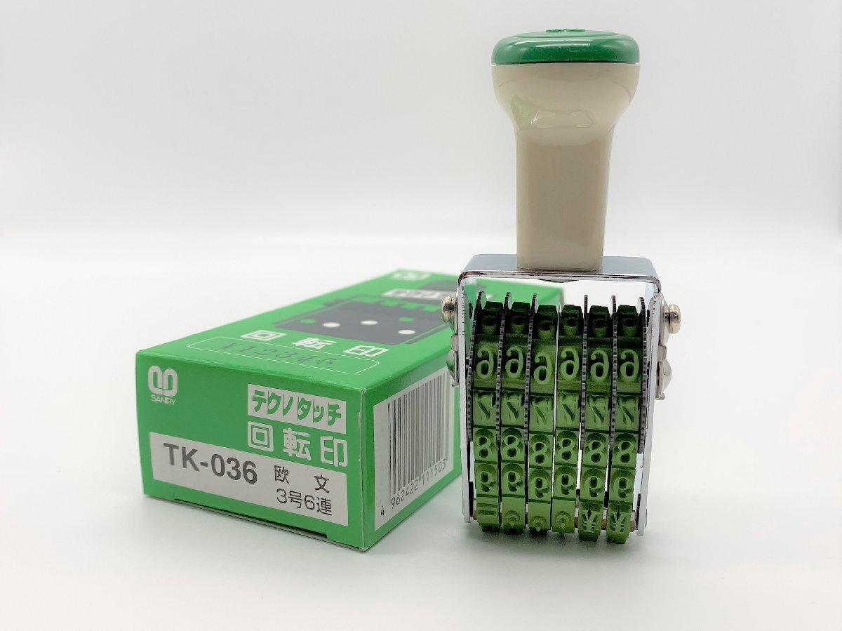 【三枝堂】新品 サンビー テクノタッチ回転印 「TK-036」 欧文 3号6連 明朝体 長期保管商品 ☆送料は当社負担☆