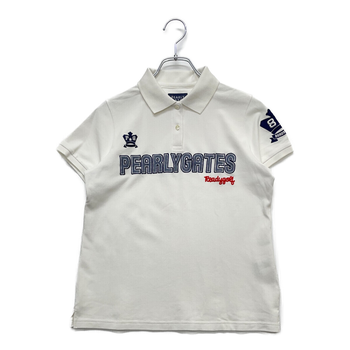 coco 中古【値下げ】 パーリーゲイツ PEARLY GATES メンズ 半袖ポロシャツ 1(M) 白 ホワイト 刺しゅう レターパックプラス発送可 91560