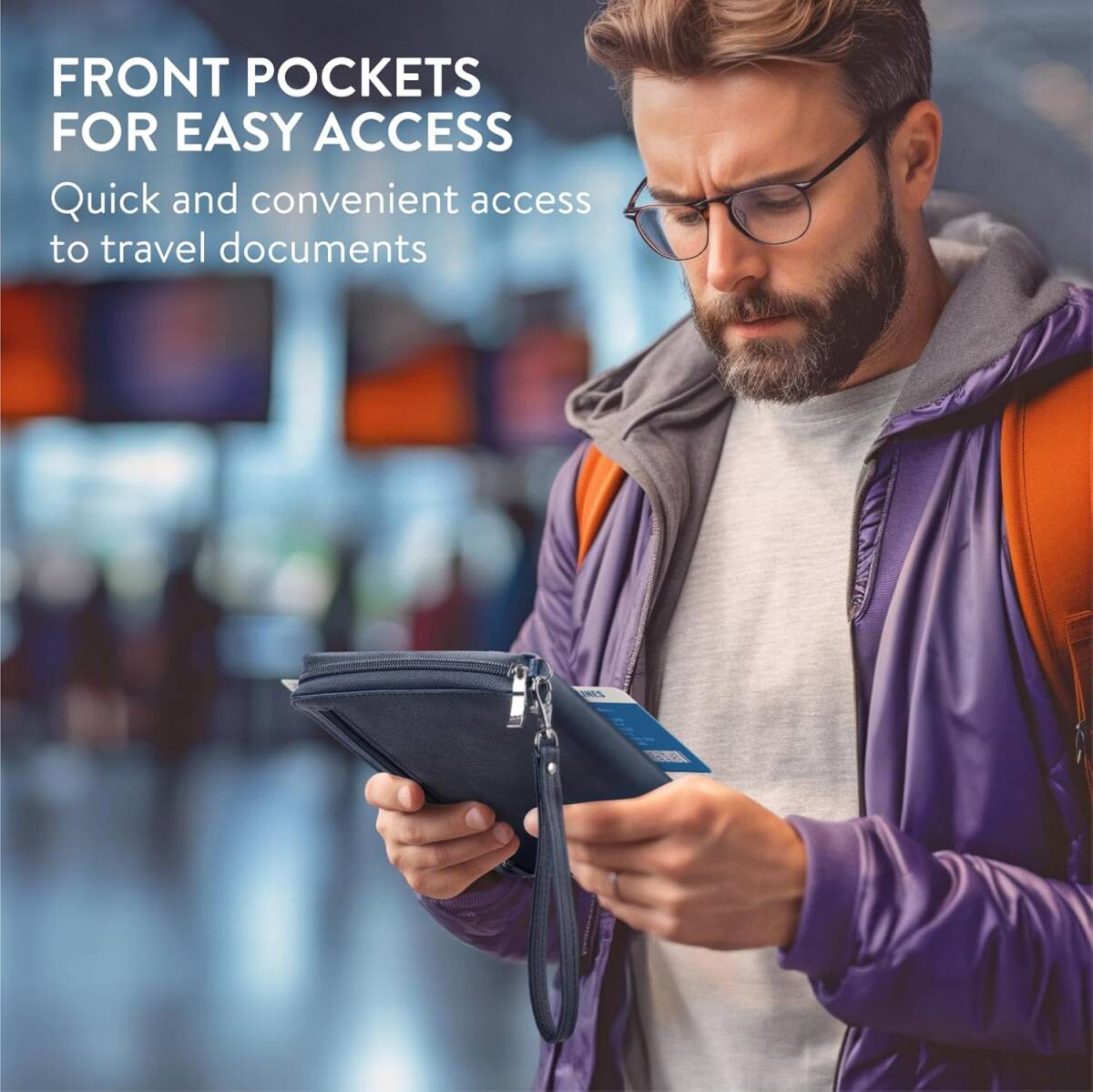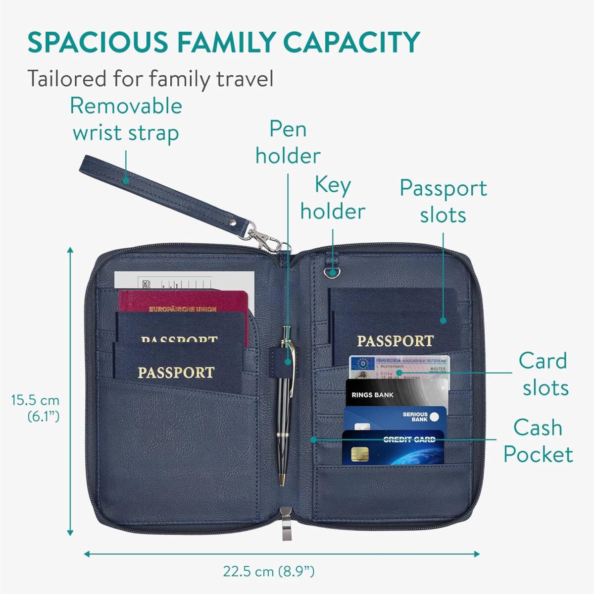 1つにまとめて: このトラベルポーチは6つのパスポート用スロットを備え、ご家族での海外旅行にぴったり!旅行書類、航空券、現金、カードなどを収納できるたくさんのポケットがデザインされ、これ1つに必要なアイテムをまとめることができます。通帳ケースや保険証 ケースとしても使用可能です。