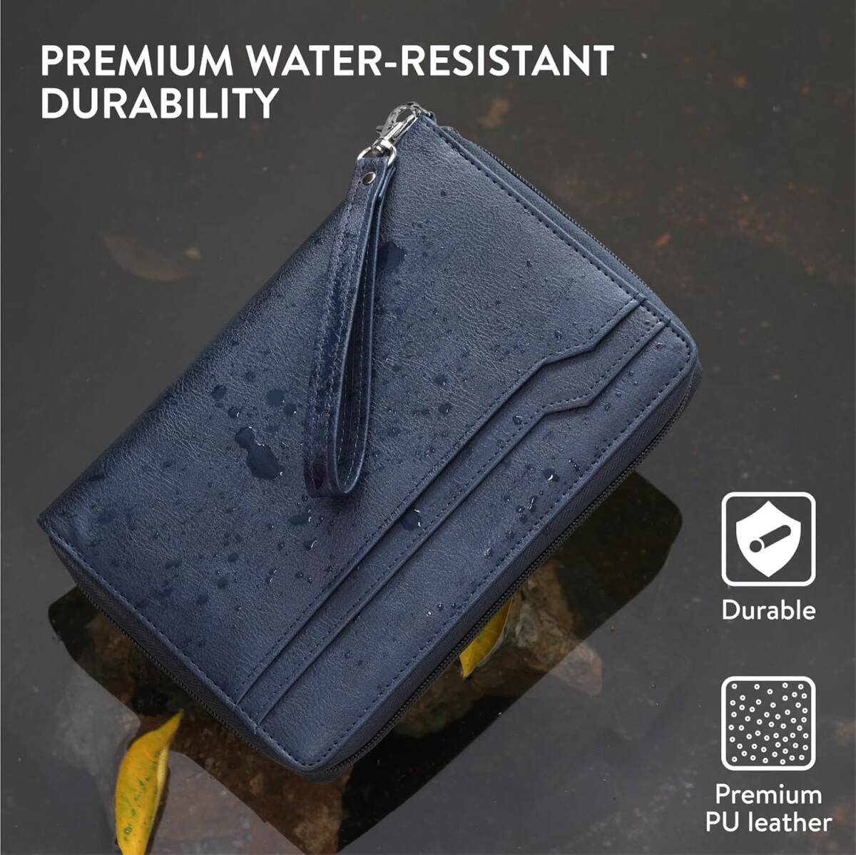 美しいレザールック: 高級感あふれるレザー調デザインのカードホルダーが、あなたの旅行をよりスタイリッシュに演出します。耐久性に優れた防水レザーを使用しているため、海外旅行の際や、天気が悪い日でも大切な書類やカード類を守ることができ、いつでも安心してご使用いただけます。
